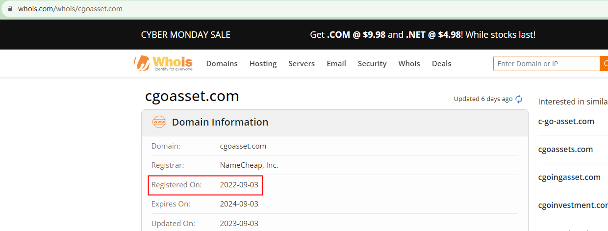 Secondly, Capital Gold Asset asserts it has been trusted by customers for more than 20 years. However, its domain, cgoasset.com, was first registered in September 2022. This discrepancy raises questions about the platform's honesty.
