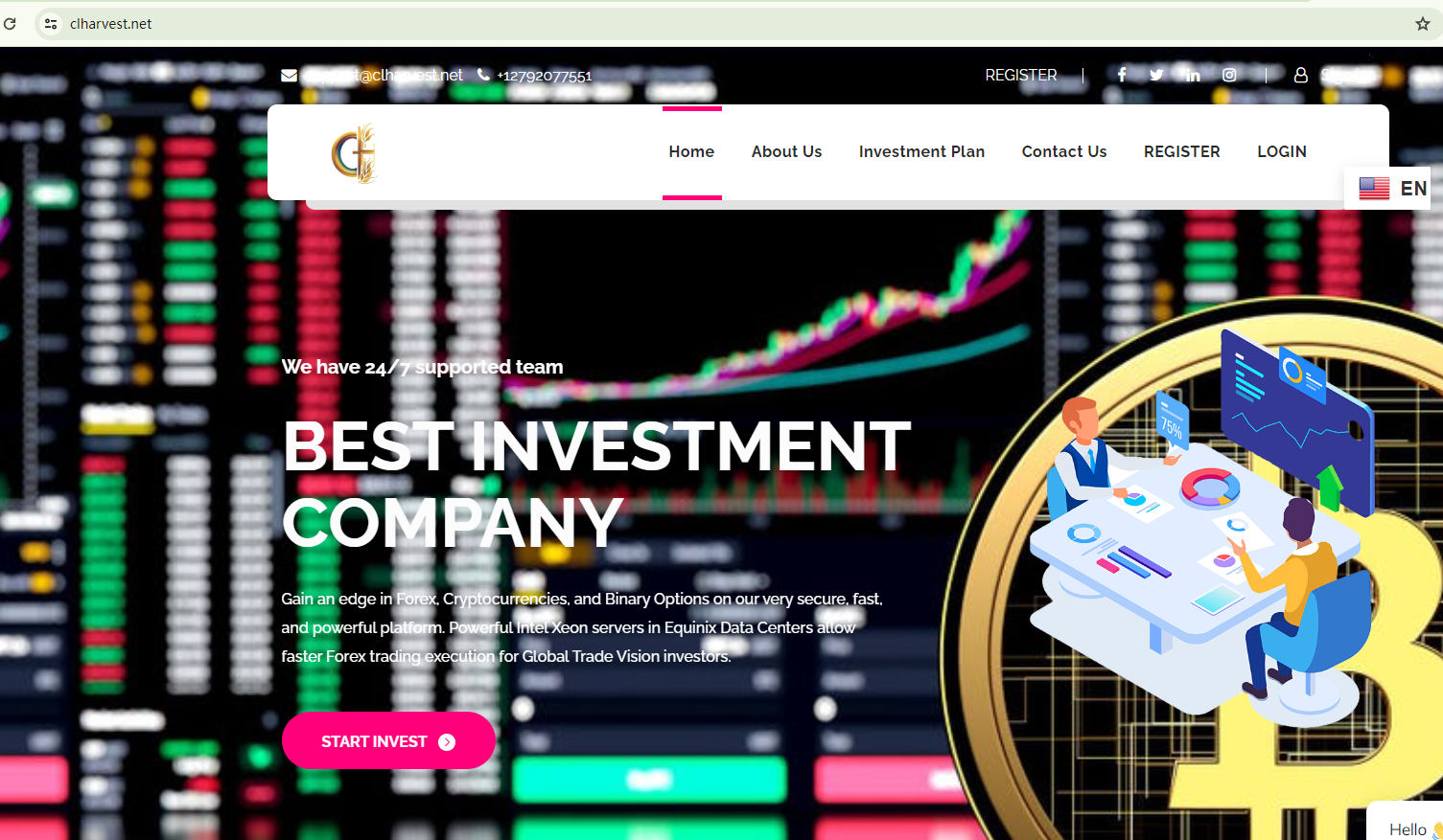 The company claims to have offices in the UK and the US. We conducted a search for this company in the registers of the Financial Conduct Authority (FCA) and the National Futures Association (NFA). The FCA has issued a warning against Capital Harvest, and there were no matching entries in the NFA register.