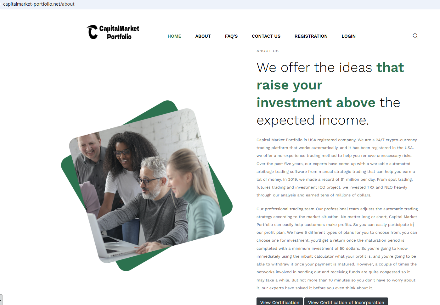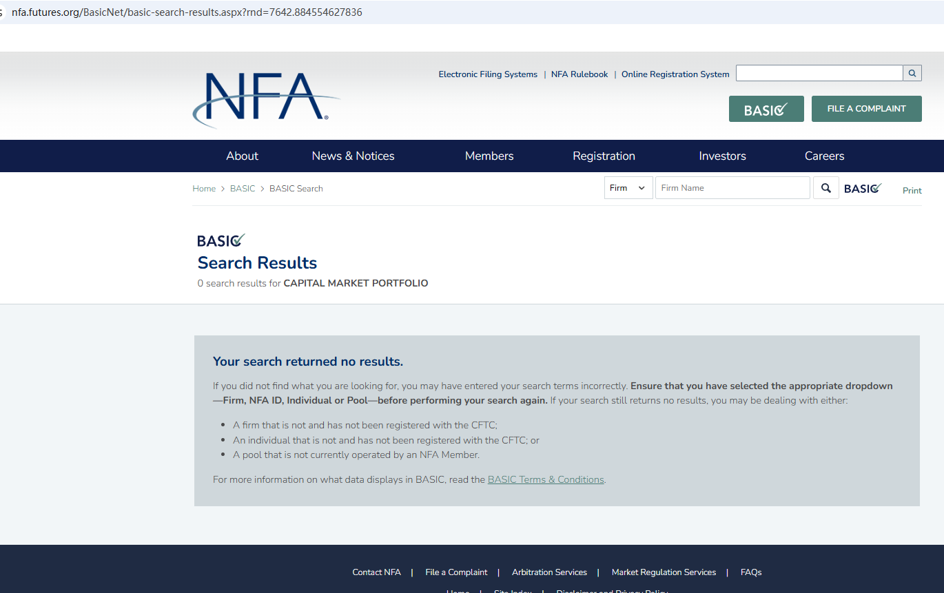 In fact, Capital Market Portfolio is not regulated by any authority. Therefore, Capital Market Portfolio is a scam.