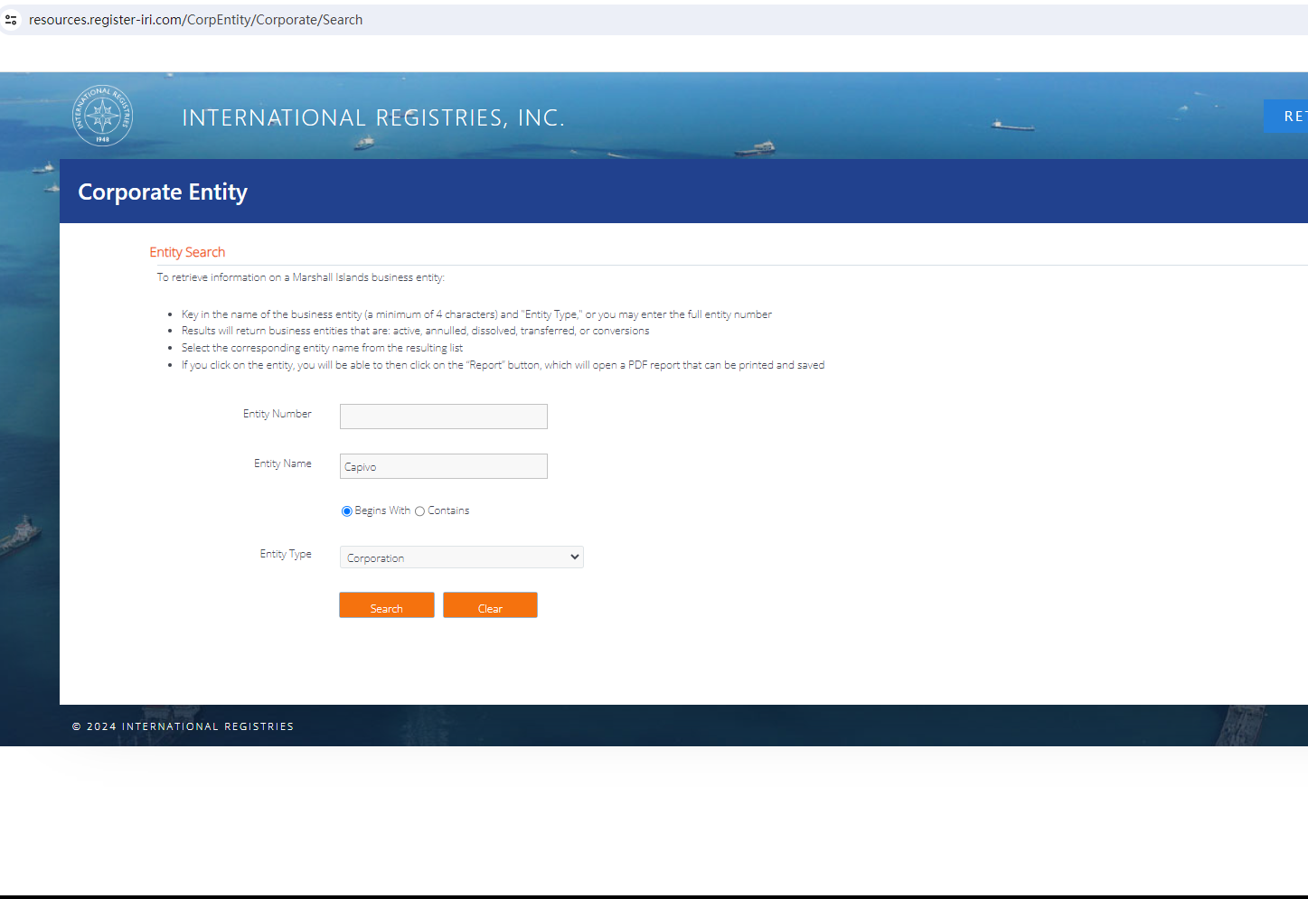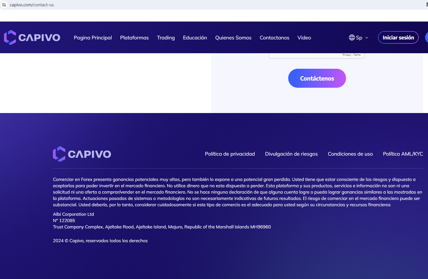 According to its website, it is located in the Marshall Islands. Upon investigation, no matching information was found in the Marshall Islands Registry (IRI).In addition, the Comisión Nacional del Mercado de Valores (CNMV) issued a warning that Capivo was providing financial services or products without authorisation.In essence, Capivo is not regulated by any governing body. Entrusting it with investors' funds is highly risky, as there are no legal protections in place to safeguard the funds.Capivo appears to be a scam.