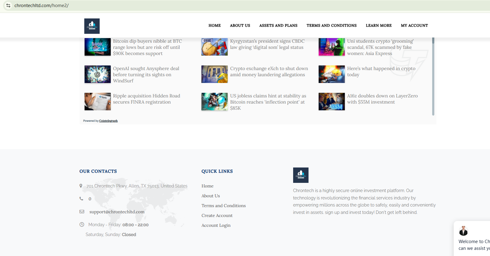 In essence, Chrontech is not regulated by any governing body. Entrusting it with investors' funds is highly risky, as there are no legal protections in place to safeguard the funds. Chrontech appears to be a scam.
