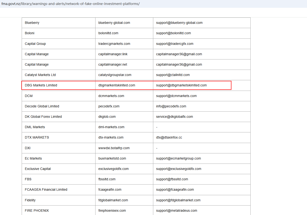 On February 17, 2025, the New Zealand Financial Markets Authority (NZ FMA) released a warning list, advising investors to stay vigilant about 96 suspicious investment websites including dbgmarkentskinlted.com. https://www.fma.govt.nz/library/warnings-and-alerts/network-of-fake-online-investment-platforms/