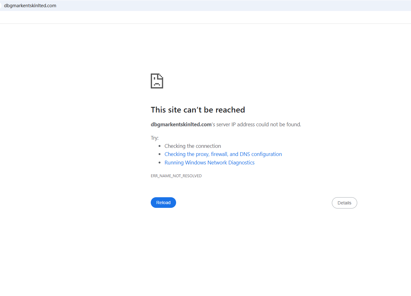 BrokersView found that the domain "https://dbgmarkentskinlted.com/" is currently inaccessible. This is widely regarded as a significant red flag, as the suspension of a broker's website often points to underlying regulatory or operational issues.