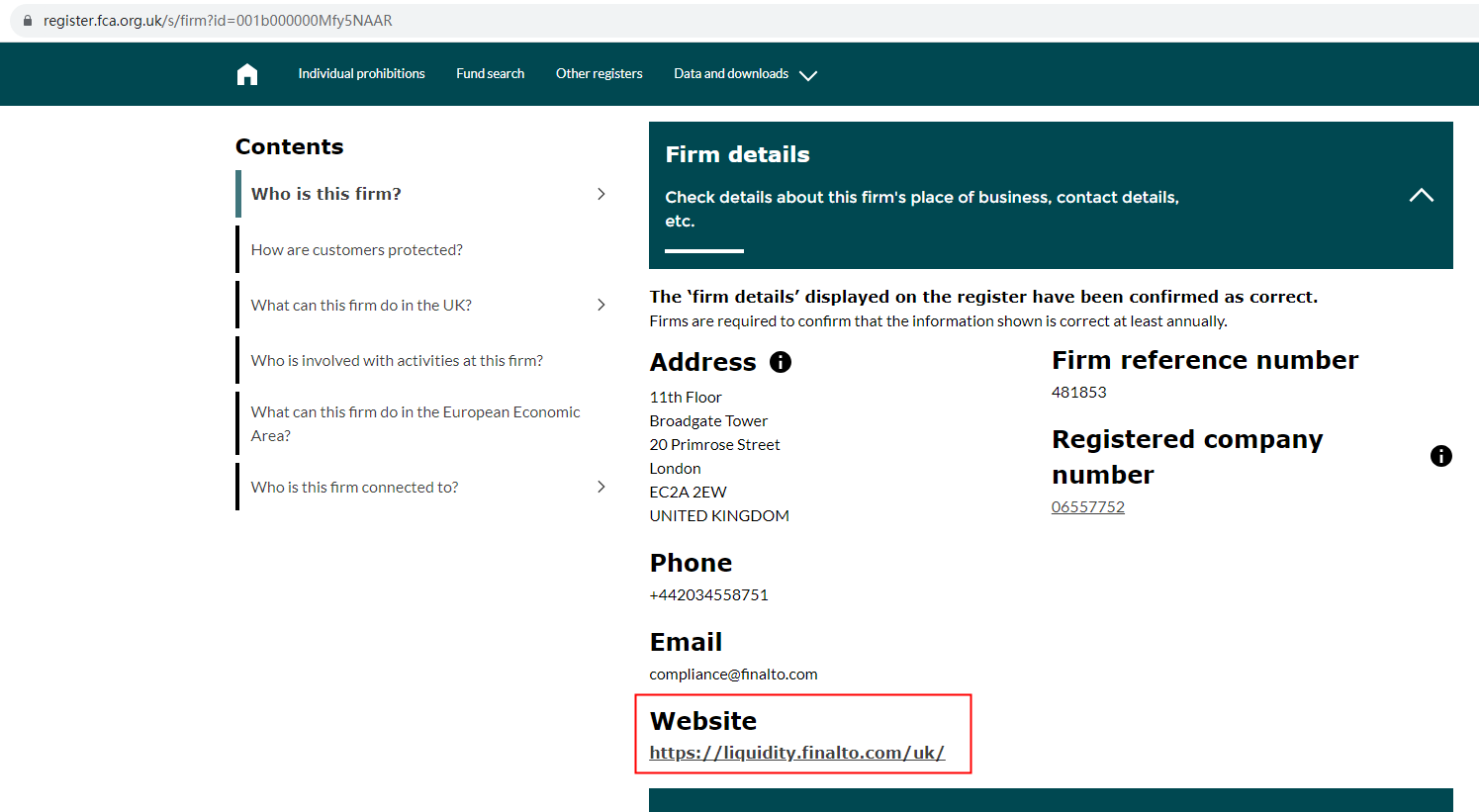 The United Kingdom Financial Conduct Authority (UK FCA) issued a warning that Clone Finalto Pro was a clone of FCA Authorised firm, Finalto Financial Services Limited.