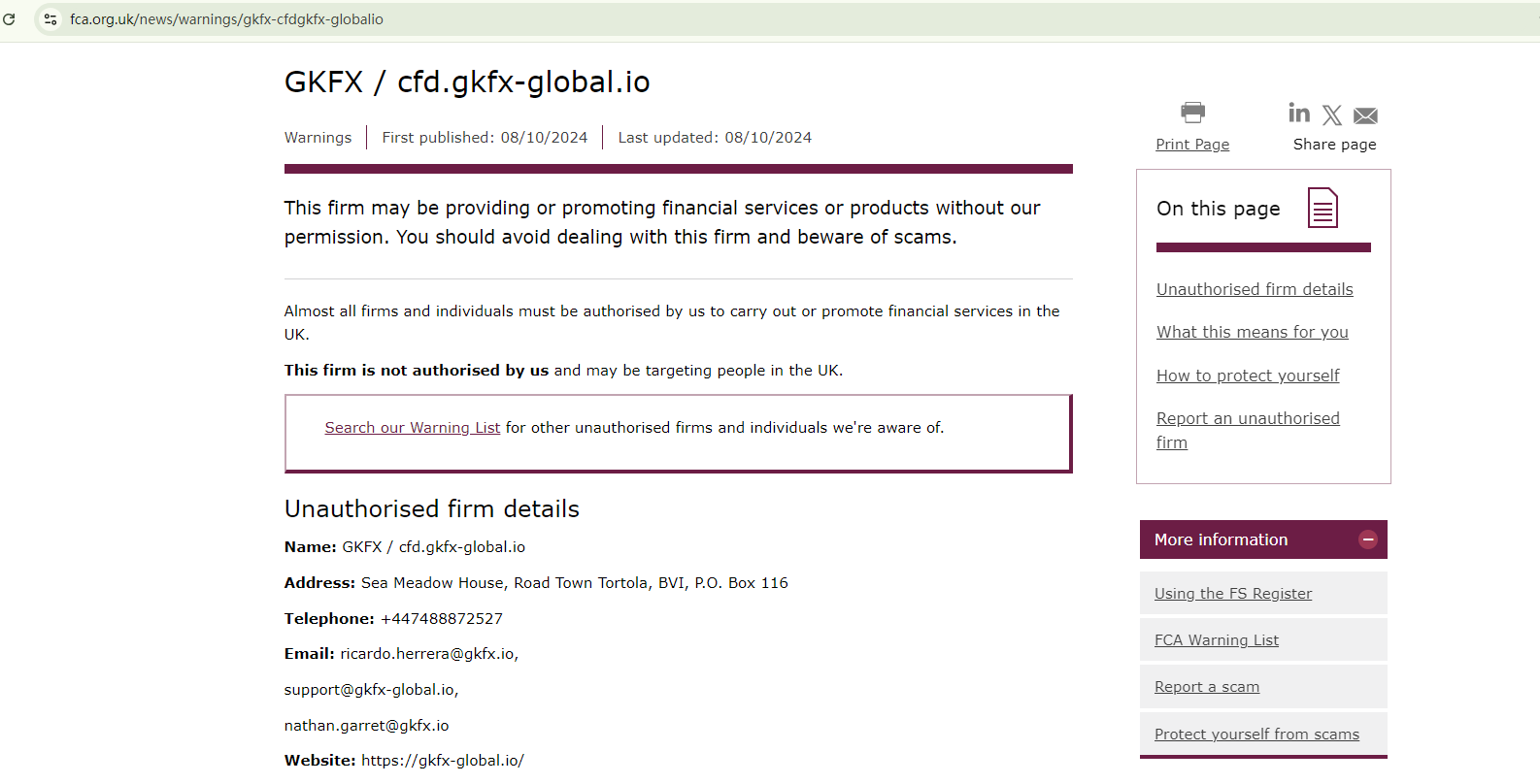 In addition, the Financial Conduct Authority (FCA) has flagged gkfx-global.io as unauthorized.