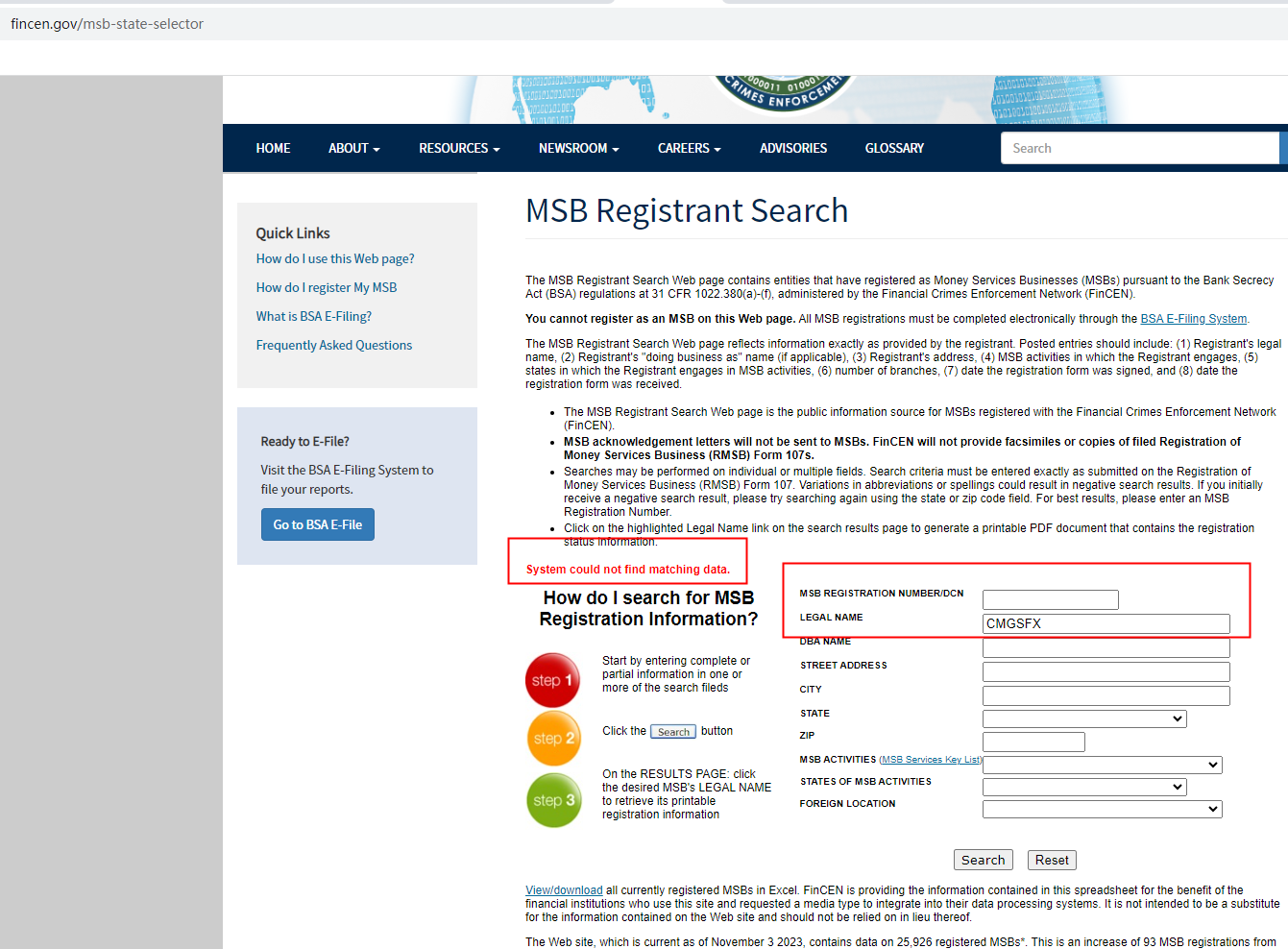 • Nov 08, 2023 BrokersView has Reviewed that ​CMGSFX is an Unregulated Broker