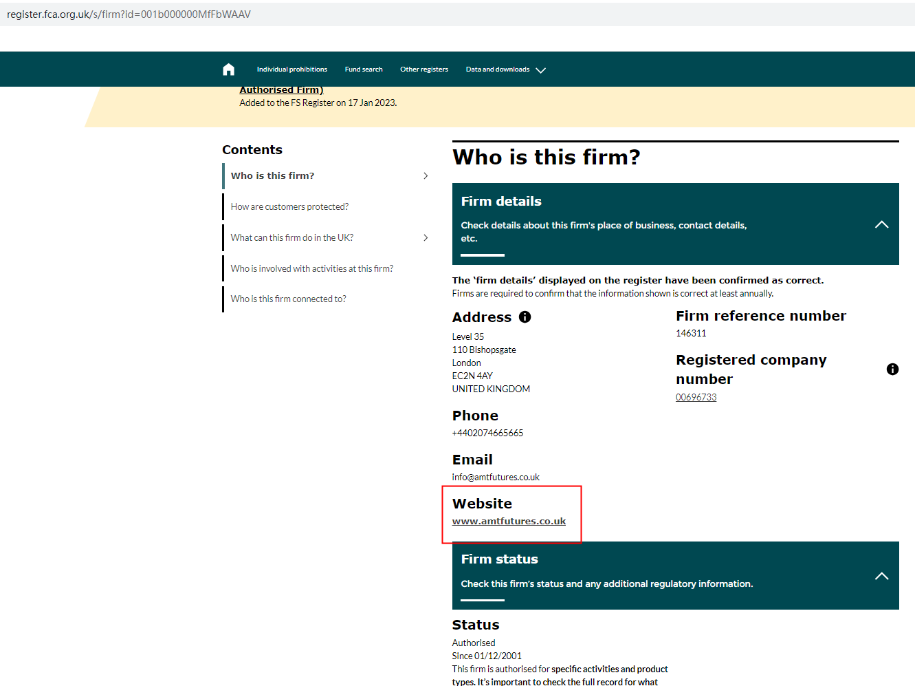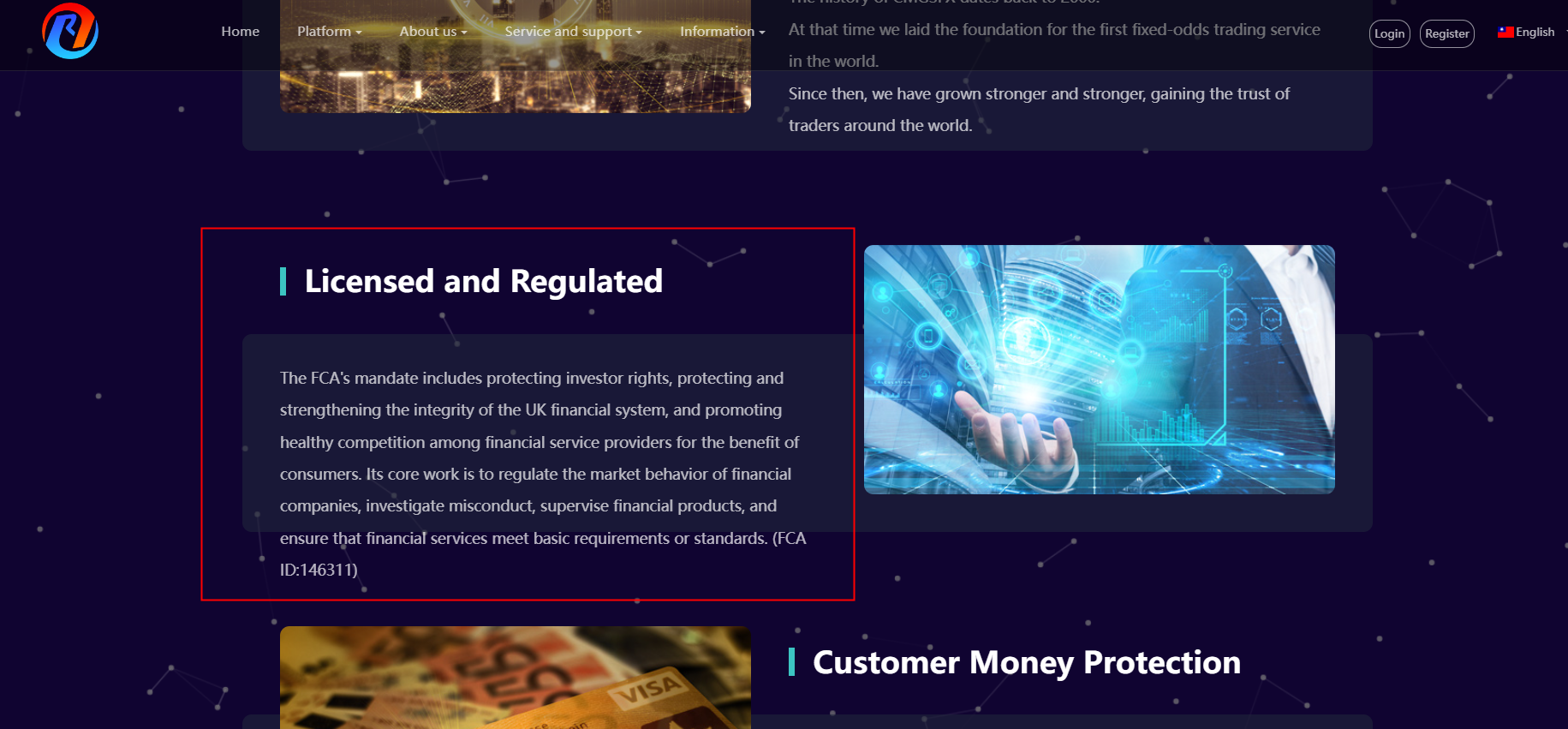 While we found corresponding records in the FCA to the regulatory number, the company's name and website information linked to this FRN are different from CMGSFX's. It evident that CMGSFX has illegally copied the company's regulatory information to deceive investors.