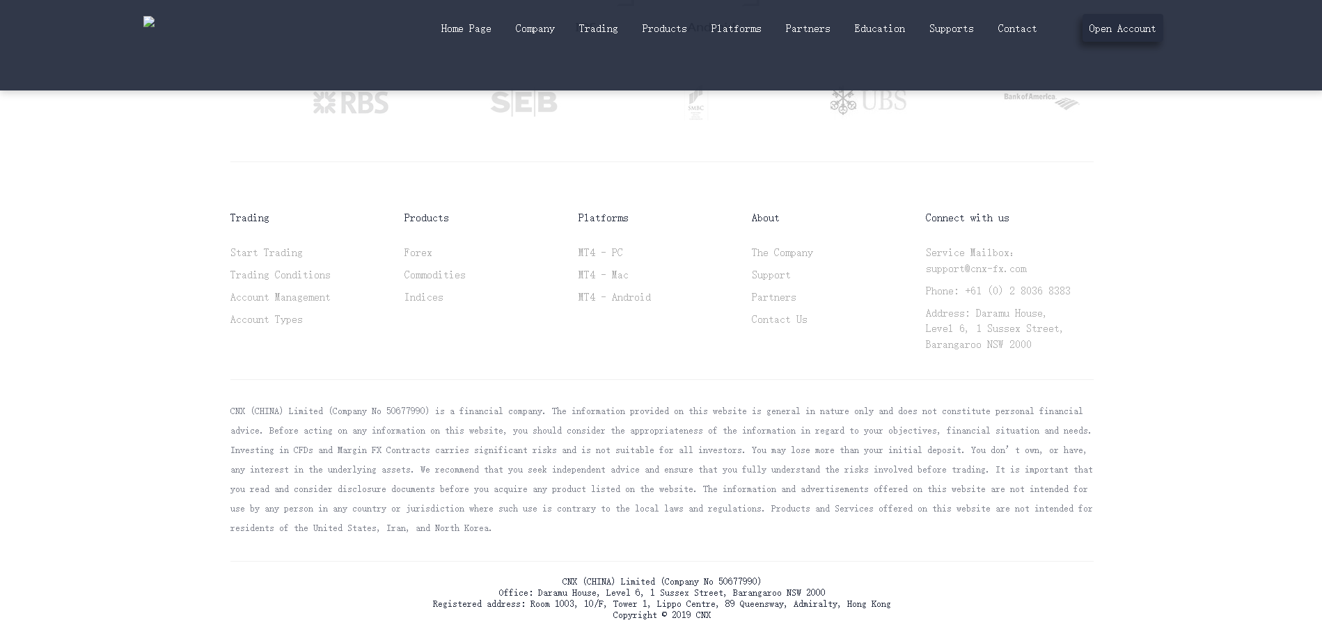 CNX (CHINA) Limited’s website provides no regulatory disclosures, only claims office addresses in Australia and Hong Kong, China.