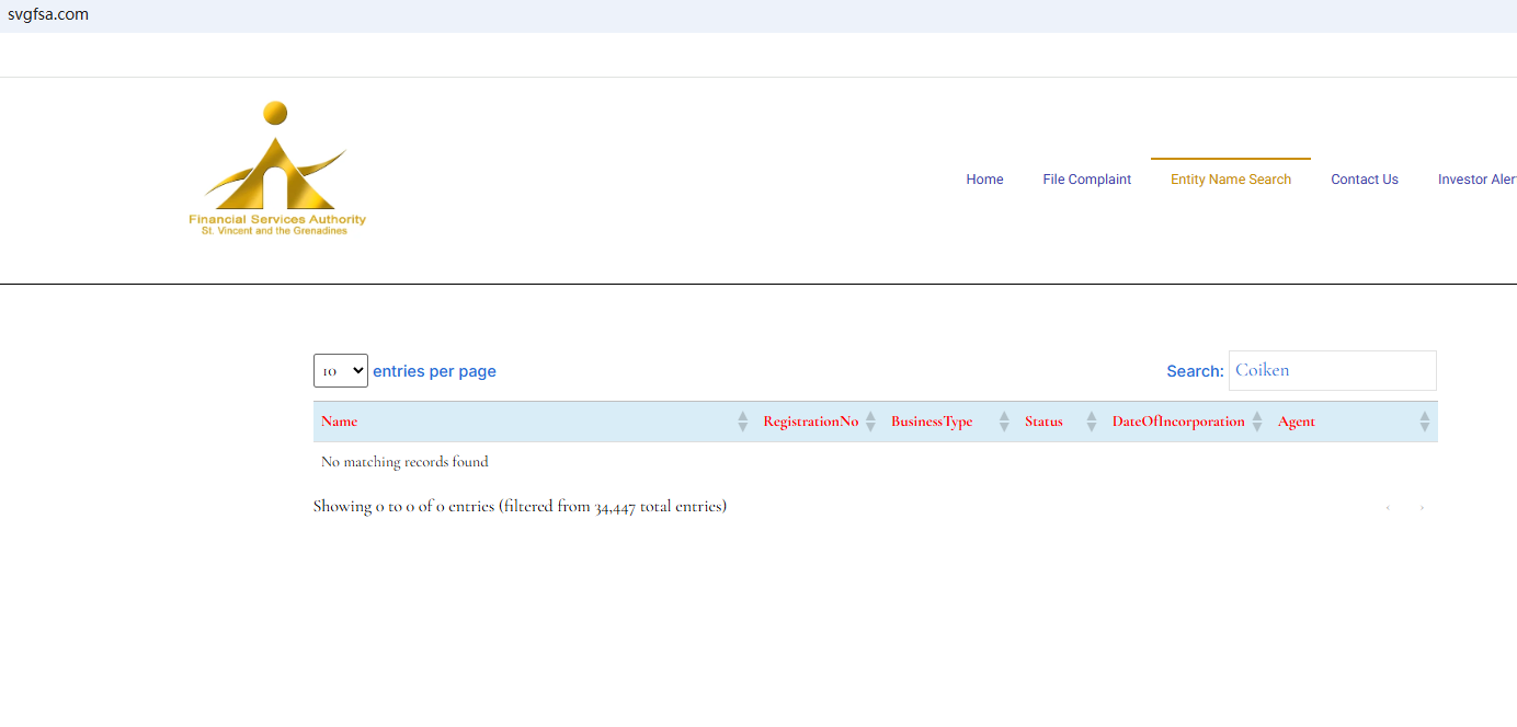 Coiken does not display valid regulatory approval on its website. It was previously claimed to be registered in St. Vincent. However, upon verification, this registration no longer exists, and the St. Vincent and the Grenadines Financial Services Authority (SVG FSA) lacks the authority to regulate forex, thus not constituting a valid forex license. Coiken appears to be unauthorized by any reputable financial regulator, raising serious concerns about potential fraud.