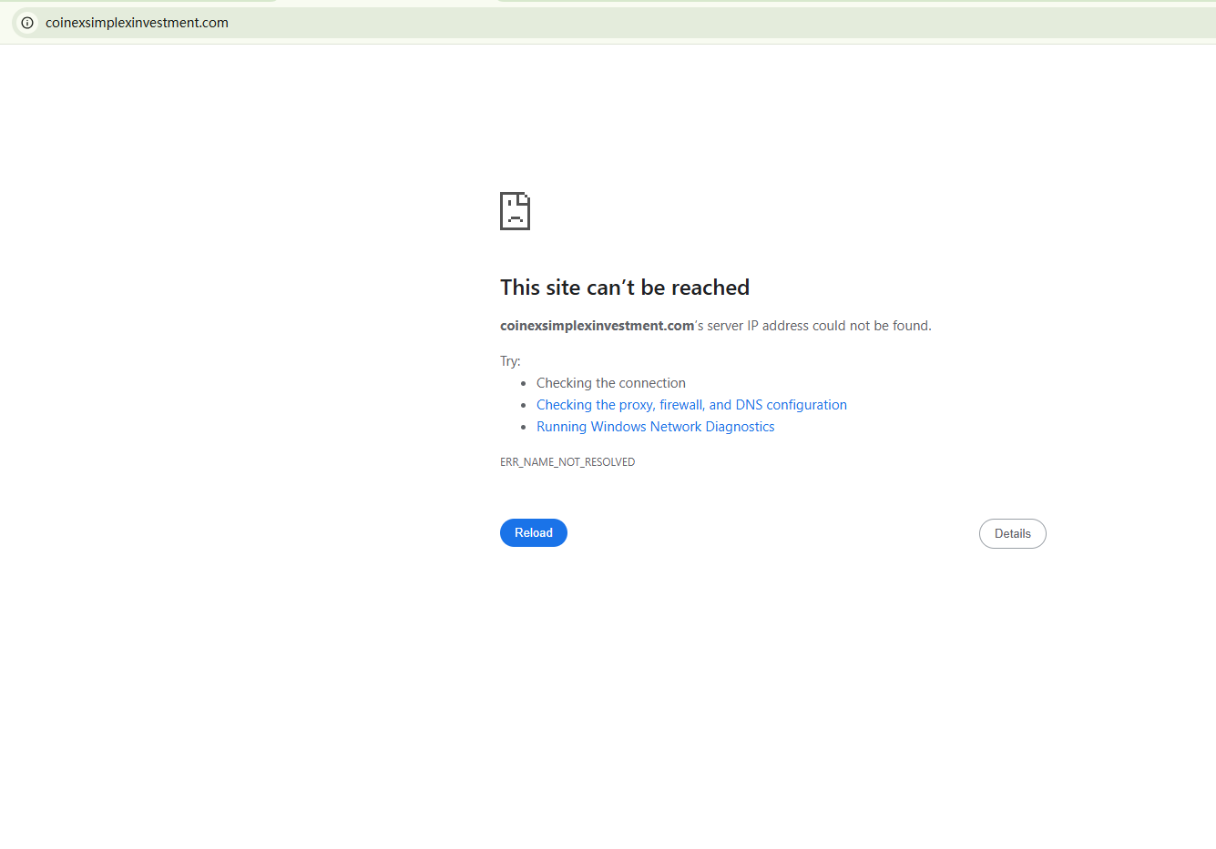 The contradictory statements made by COINEX SIMPLEX INVESTMENT regarding its registration number being issued by either a US or UK authority raise serious doubts about its legitimacy. Legitimate brokers and investment firms are expected to prominently display their accreditation and licenses, without causing any confusion or ambiguity. To verify its credibility, we conducted searches in the registers of two financial watchdogs, the Financial Conduct Authority (FCA) in the UK and the National Futures Association (NFA) in the US. However, no records matching COINEX SIMPLEX INVESTMENT were found in either of these regulatory databases. This absence of regulatory oversight and the inability to locate any official records strongly suggests that COINEX SIMPLEX INVESTMENT is operating outside the regulatory framework.