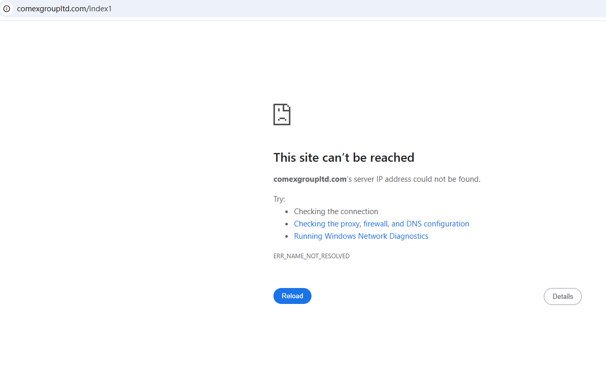 BrokersView found that the domain "https://www.ccfgroupam.com; https://comexgroupltd.com/index1" is currently inaccessible. This is widely regarded as a significant red flag, as the suspension of a broker's website often points to underlying regulatory or operational issues.