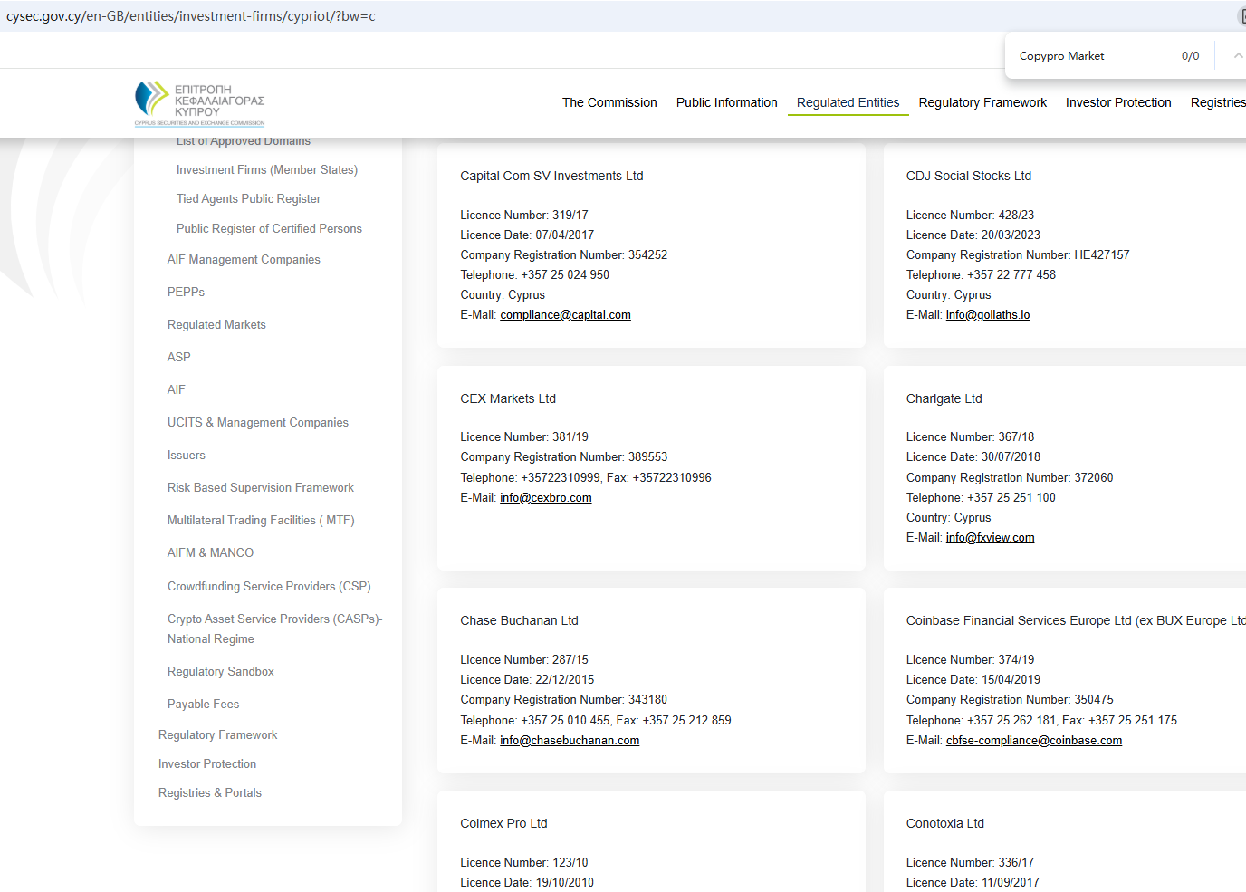 According to its website, it claims to be registered in both the Seychelles and Cyprus. Upon investigation, no matching information was found in the Cyprus Securities and Exchange Commission (CySEC). In addition, we found that the Seychelles Financial Services Authority (Seychelles FSA) issued a warning against Copypro Market for the lack of the required authorization.