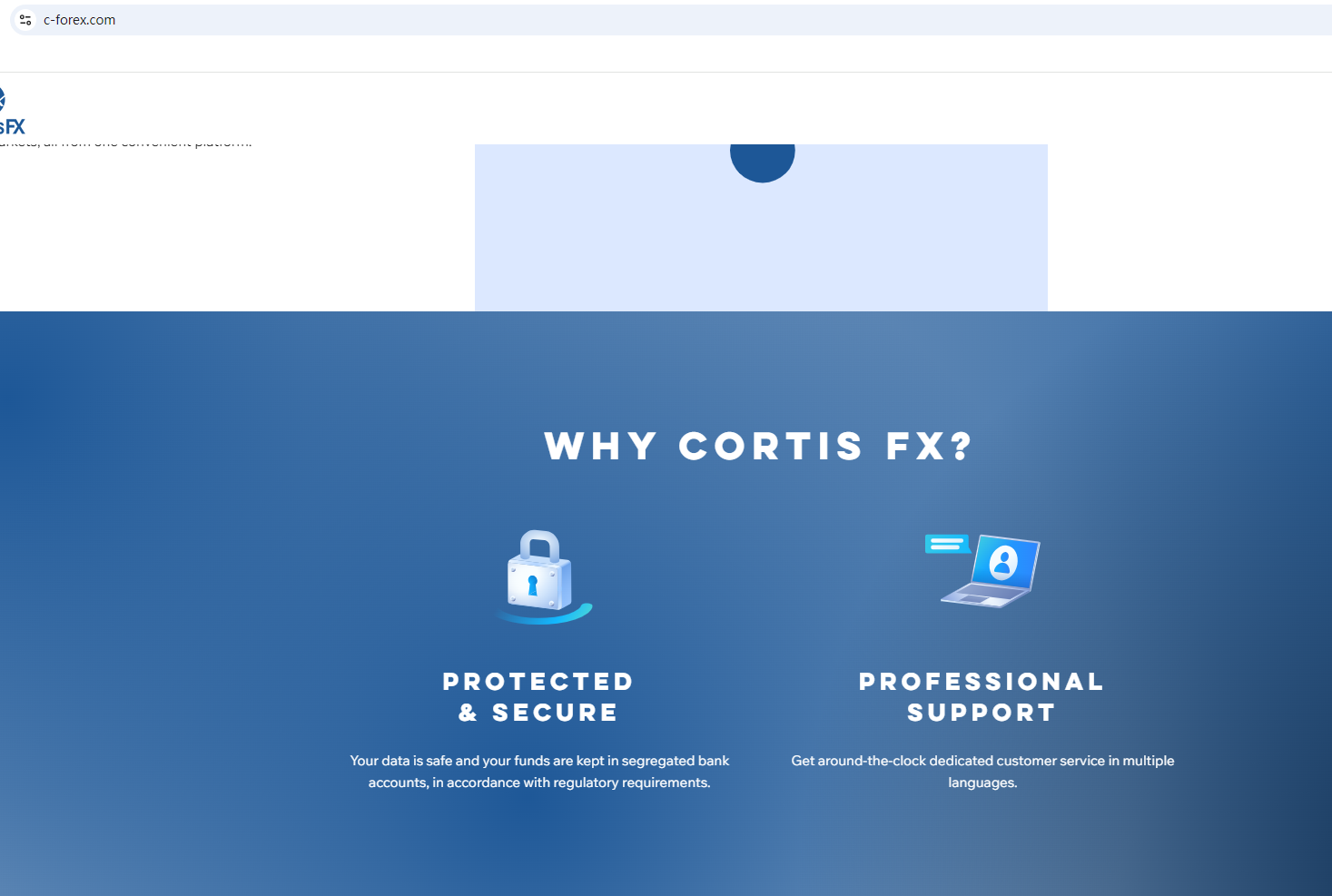 It claims to be a reliable company, but does not display any valid regulatory information on the website for inquiry. This is very unreliable, so investors are advised to be careful in distinguishing.The truth is that CORTIS FX is not regulated by any regulators. Letting it hold or control investors' money is unsafe, and the money can not be protected by any laws.CORTIS FX is a scam.