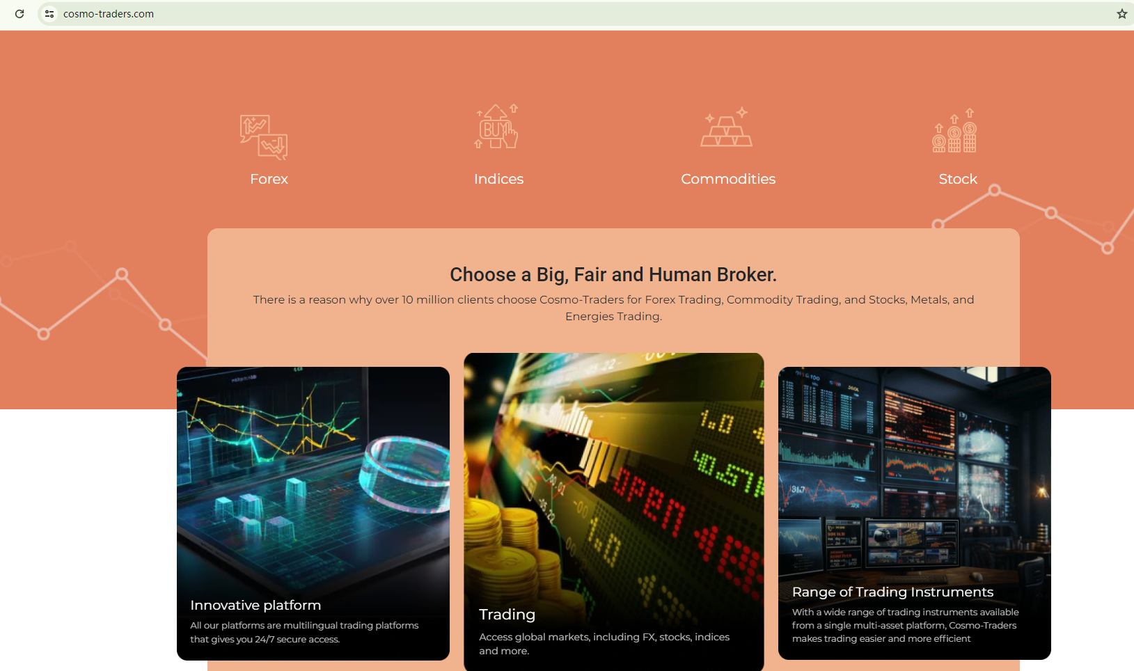 Cosmo Traders has not provided any company information that would allow investors to confirm its authenticity or legitimacy. The only means of communication provided on their Contact page is a web form, which means the operators control the initiation of communication. This lack of transparency is a significant indicator of a potential scam, as it would be difficult for investors and authorities to contact or trace the broker if they were to disappear without notice.