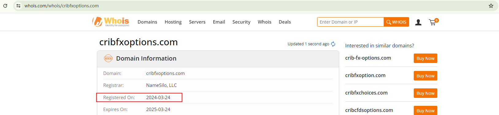 CRIB FX OPTIONS' domain name was only registered in late March this year. The recent establishment of the website, coupled with a lack of transparency in its company profile, raises concerns.