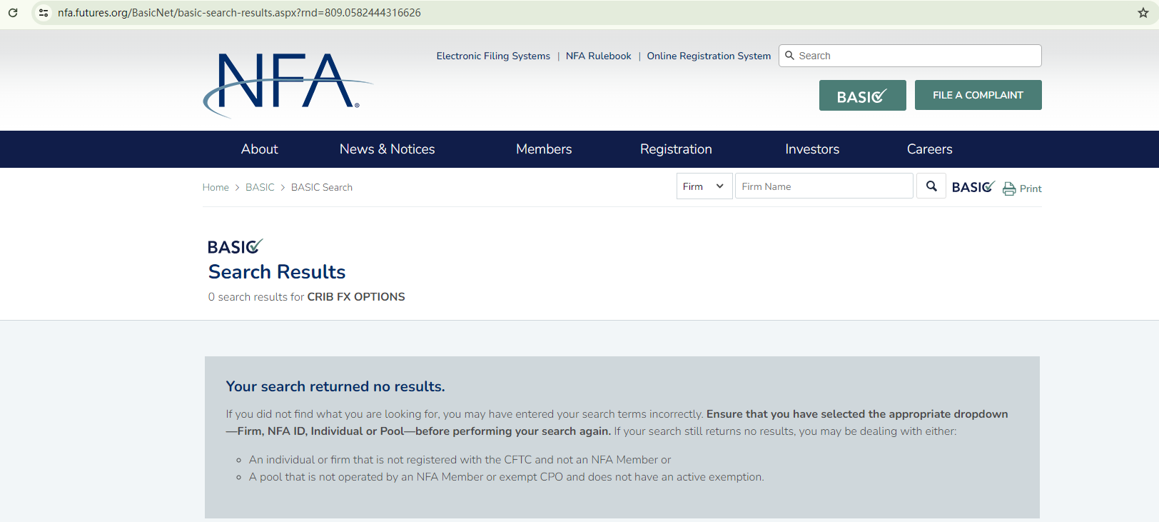 • May 30, 2024 BrokersView has reviewed that CRIB FX OPTIONS is an unregulated broker