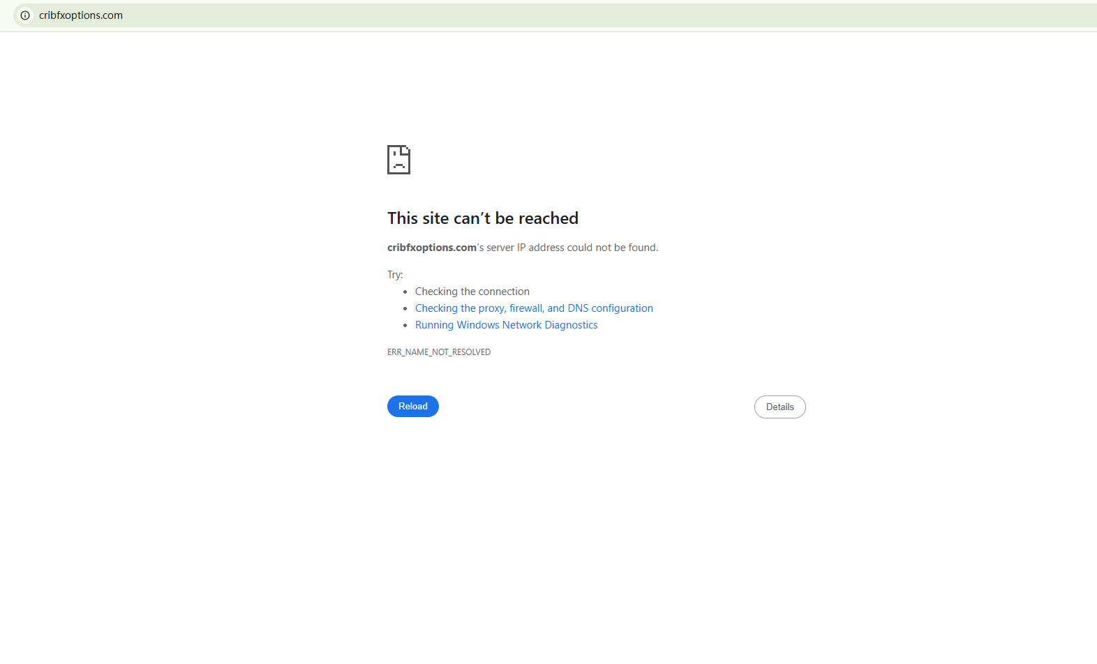 BrokersView found that the domain "https://cribfxoptions.com/" is currently inaccessible. This is widely regarded as a significant red flag, as the suspension of a broker's website often points to underlying regulatory or operational issues.