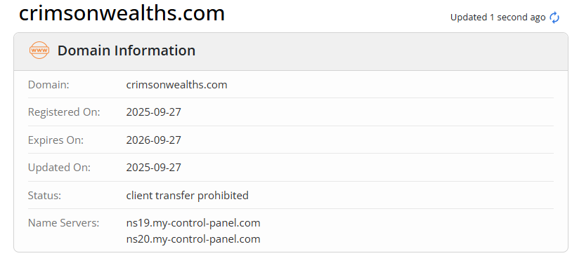 The company claims to have been incorporated in the UK in 2013. However, our investigation revealed that its domain name was only created in 2025. Furthermore, and more importantly, the Financial Conduct Authority (FCA) issued a warning regarding Crimson Wealths, suspecting that this company may be offering financial services or products without the necessary authorization.
