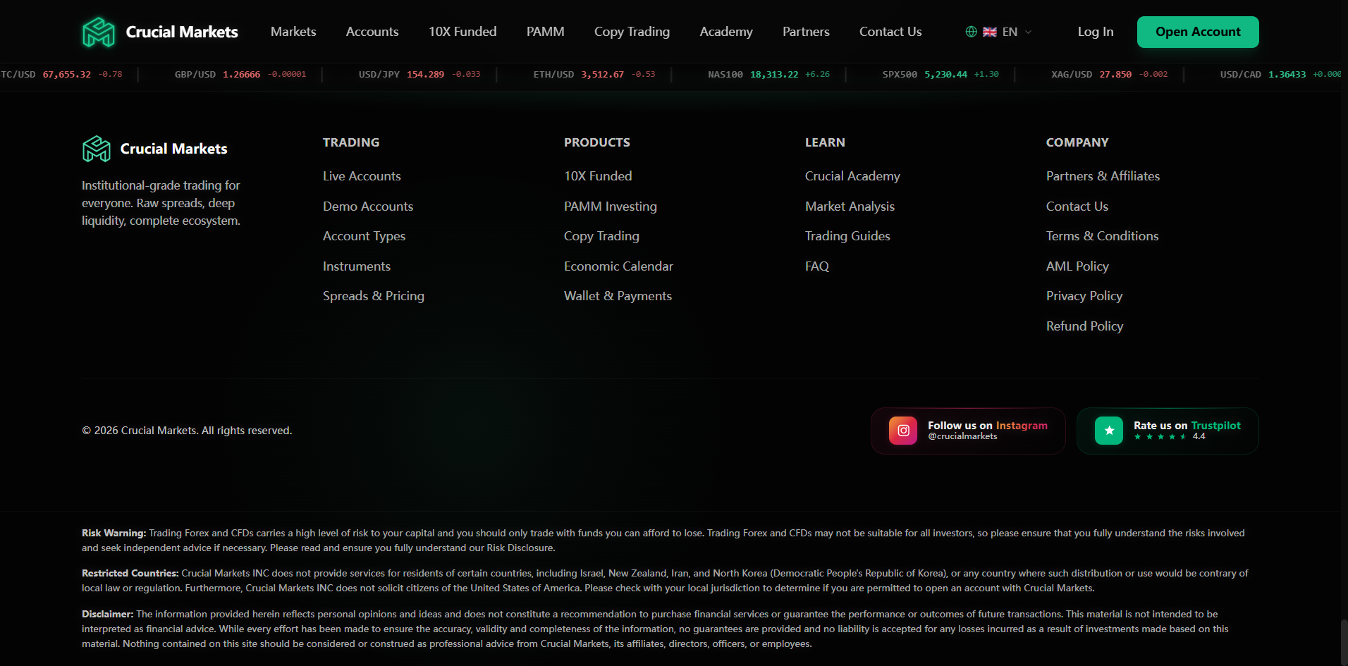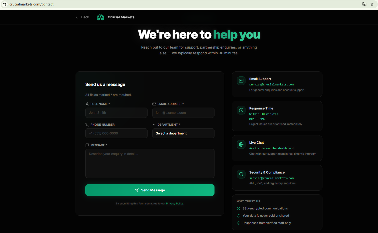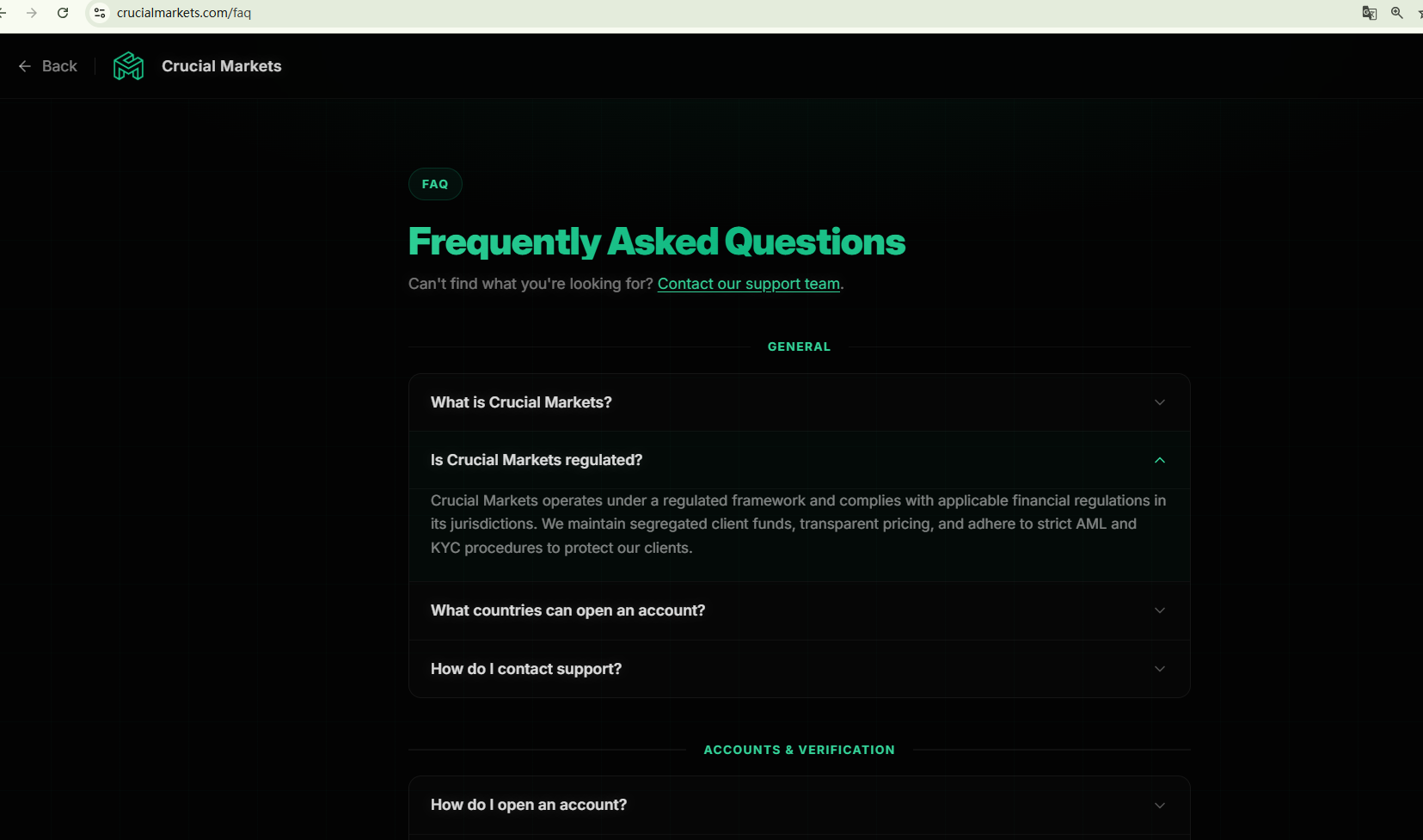 Crucial Markets’ website provides no regulatory disclosures and fails to list basic corporate information, such as its legal entity name, registered address, jurisdiction of incorporation, or contact details. This lack of transparency makes it impossible to verify whether the platform holds any valid license or operates under legitimate oversight.