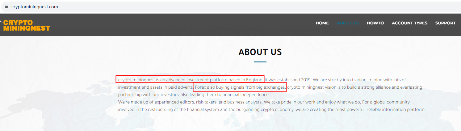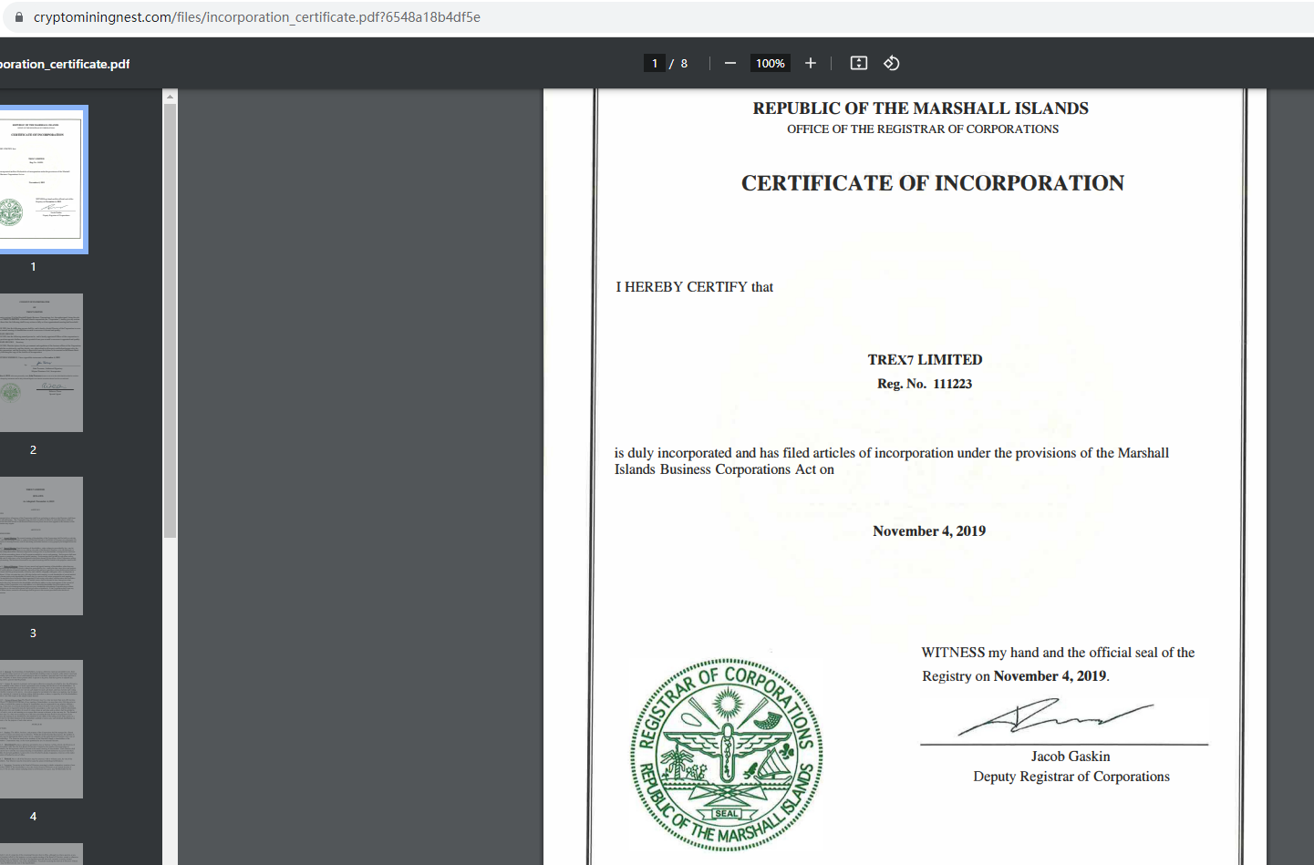 Crypto Mining Nest claims to be operated by TREX7 LIMITED, which is registered with the Marshall Islands Registry (IRI), we searched the IRI and found no matching results. And this broker is based in England, so we searched the United Kingdom Financial Conduct Authority (UK FCA) but found it was unauthorised. It is a red flag. The United Kingdom Financial Conduct Authority (UK FCA) issued a warning that Crypto Mining Nest was providing finacial services or products without authorisation.The truth is that Crypto Mining Nest is not regulated by any regulators. Letting it hold or control investors' money is unsafe, and the money can not be protected by any laws.Crypto Mining Nest is a scam.