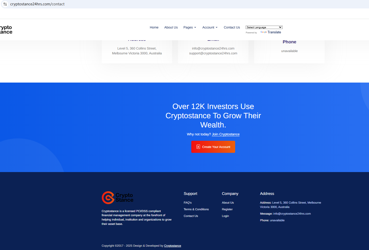 According to its website, the company claims to have been founded in 2010 with offices in Australia. However, our investigation revealed that its domain name was only created in 2019, and we found no matching information with the Australian Securities and Investments Commission (ASIC). These discrepancies send a dangerous signal. Furthermore, the Finansinspektionen (FI) issued a warning against Crypto Stance, suspecting that it is not a real company.