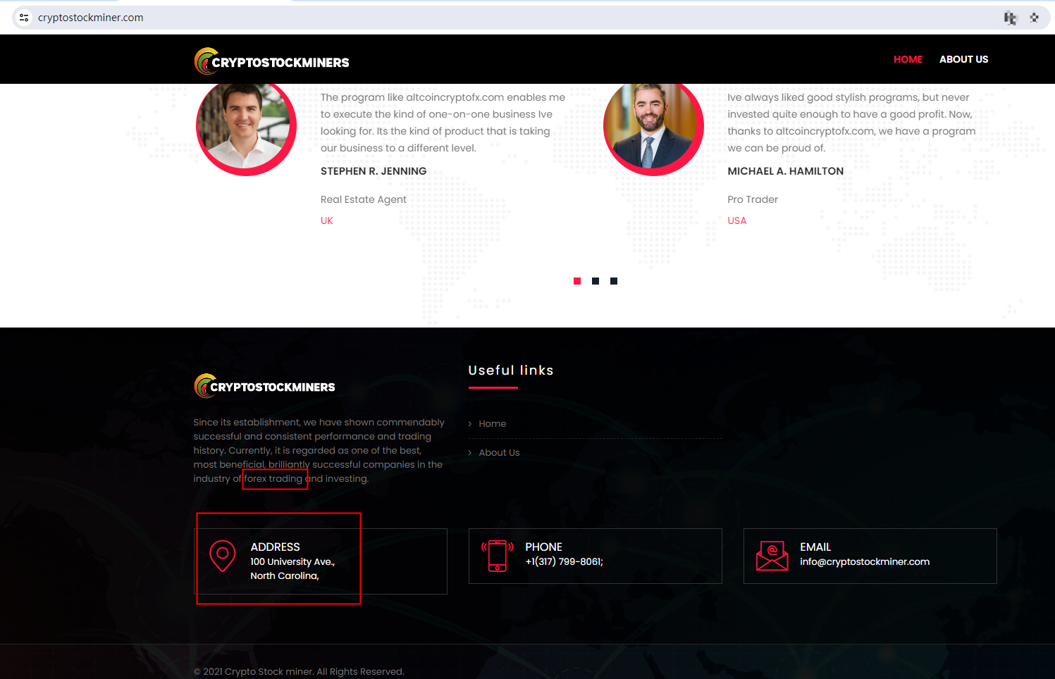 Crypto Stock miner claims to be a reliable company without presenting any information about its regulation, this broker locates in USA, but we don't find any results on National Futures Association (NFA) matching to Crypto Stock miner.The truth is that Crypto Stock miner is not under valid regulation by any regulators to do forex. Investors' funds in this broker are unsafe and cannot be protected by any law.Crypto Stock miner is a scam.