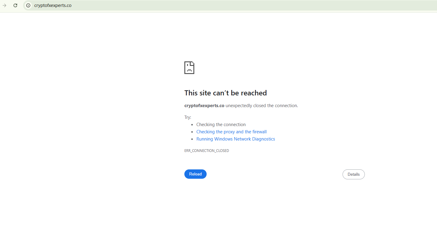 CryptoFxExperts claims to be registered with Companies House of United Kingdom (CH) under the company name of CryptoFxExperts LTD. However, we searched CH and found no matching results. That means the broker is not registered in the UK. Besides, CH is not a forex regulator. It does not regulate brokers or issue licenses. So having registration does not mean being authorized to provide financial services. CryptoFxExperts also claims to be located in the UK. As per the local laws, all forex broker shall obtain a license issued by the National Futures Association (NFA) of the United States. So we searched NFA but did not find any results match this broker. In another words, CryptoFxExperts is not regulated by NFA. Moreover, the United Kingdom Financial Conduct Authority (UK FCA) issued a warning that CryptoFxExperts is providing financial services or products in the UK without authorisation. The truth is that CryptoFxExperts is not regulated by any regulators. Letting this broker hold or control investors' money is unsafe, and the money can not be protected by any laws. Therefore, it is a scam.