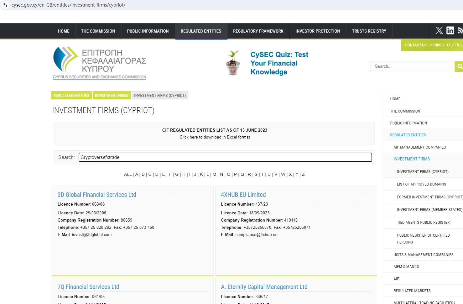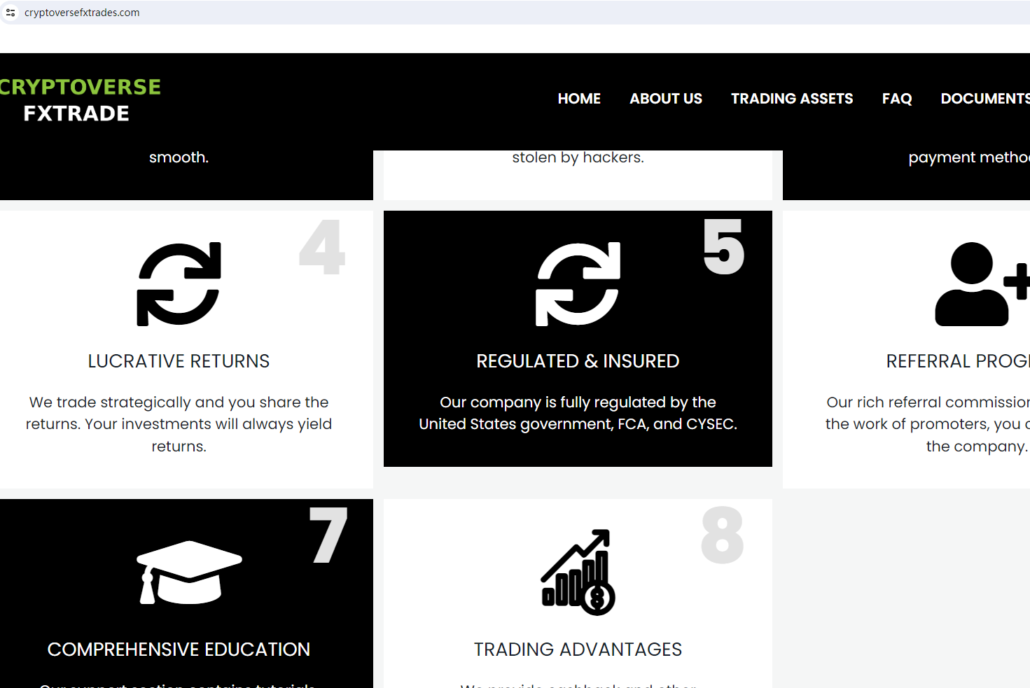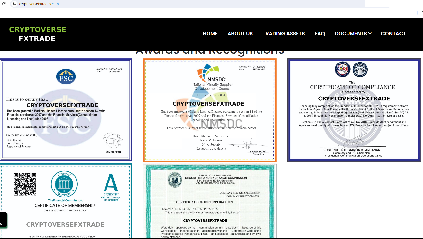 According to its website, it is located in the United States, and it also claims to be regulated by the Cyprus Securities and Exchange Commission (CySEC), the Financial Services Commission, Mauritius (Mauritius FSC), and Securities Exchange Commission (FSC). However, upon investigation, no matching information was found. In addition, it claimed to be registered with the Financial Commission, but no matching information was found.Furthermore, it claimed to be supervised by the Financial Conduct Authority (FCA). Upon investigation, it was found that the FCA had not authorized it, and the Financial Conduct Authority (FCA) issued a warning against Cryptoversefxtrade, believing this broker might be providing financial services or products without proper authorization.In essence, Cryptoversefxtrade is not regulated by any governing body. Entrusting this broker with investors' funds is highly risky, as there are no legal protections in place to safeguard the funds. Cryptoversefxtrade is unequivocally a scam.