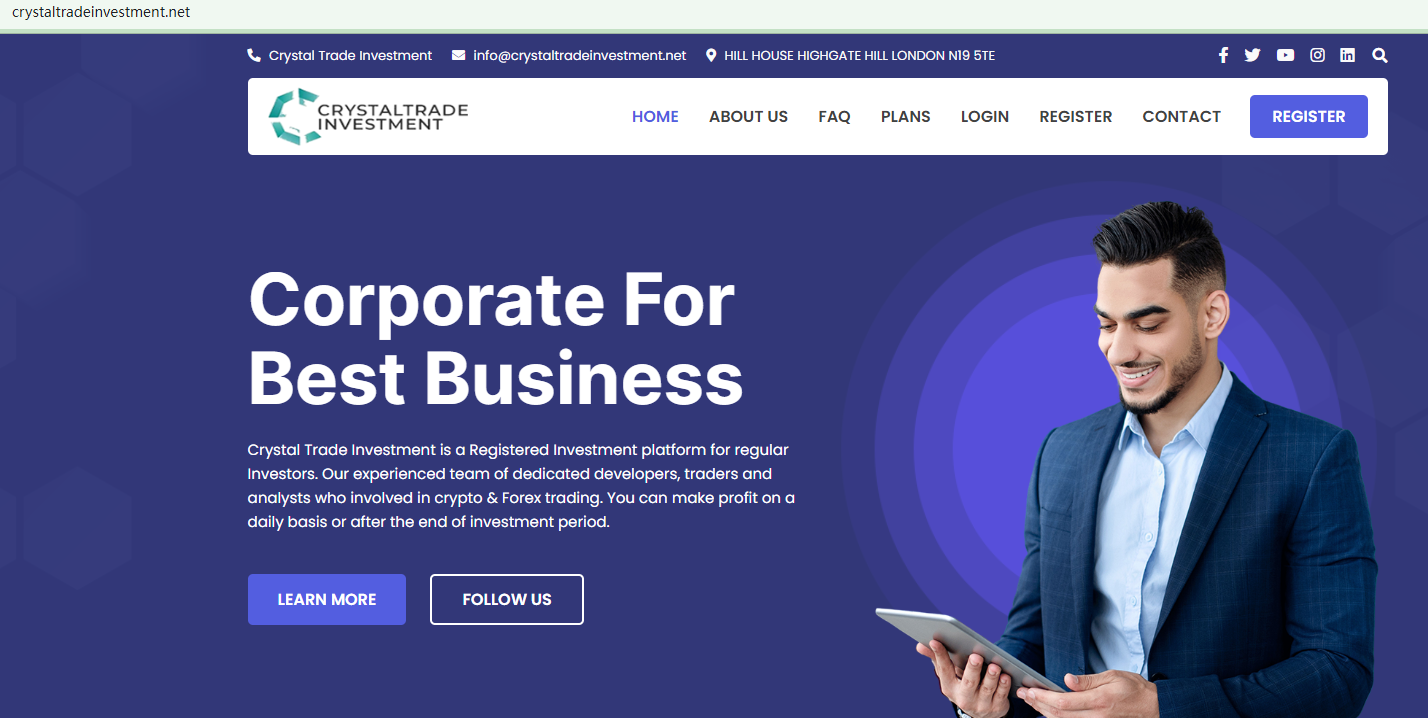 The truth is that Crystaltradeinvestment is not regulated by any regulators. Letting it hold or control investors' money is unsafe, and the money can not be protected by any laws.