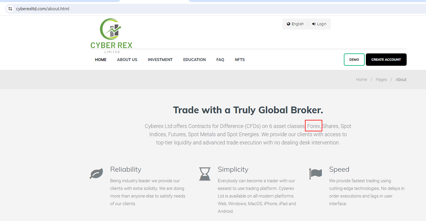CYBER REX claims to be regulated by the United Kingdom Financial Conduct Authority (UK FCA), the Polish Financial Supervision Authority (KNF) and the Capital Markets Board of Turkey (CMB), we searched the FCA but found it was unauthorised, while there were no matching results on KNF and CMB.CYBER REX also claims to be registered with the Securities and Exchange Commission (SEC), we searched the SEC but found no matching results.The truth is that CYBER REX is not under valid regulation by any regulators to do forex. Investors' funds in this broker are unsafe and cannot be protected by any law.CYBER REX is a scam.