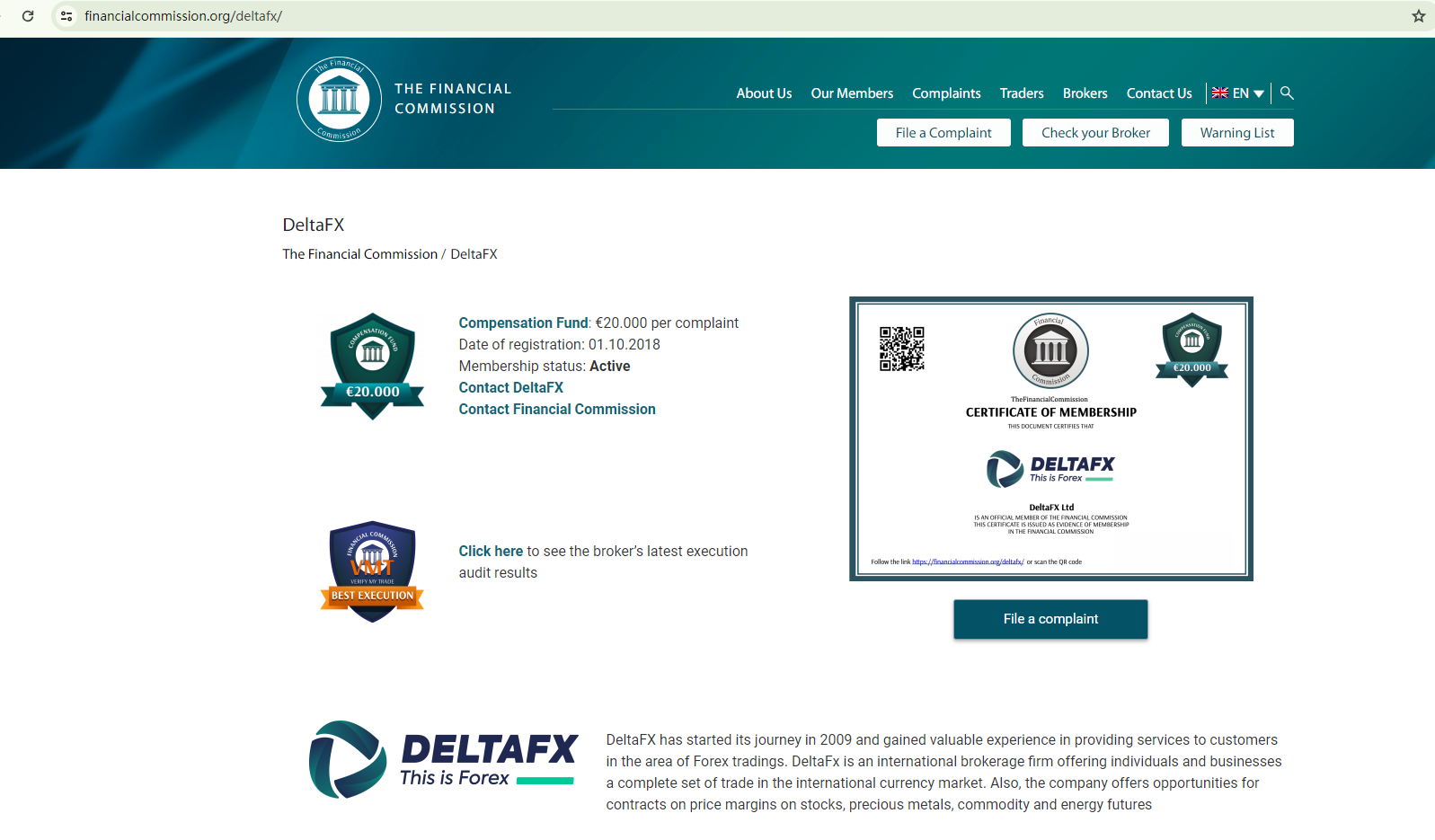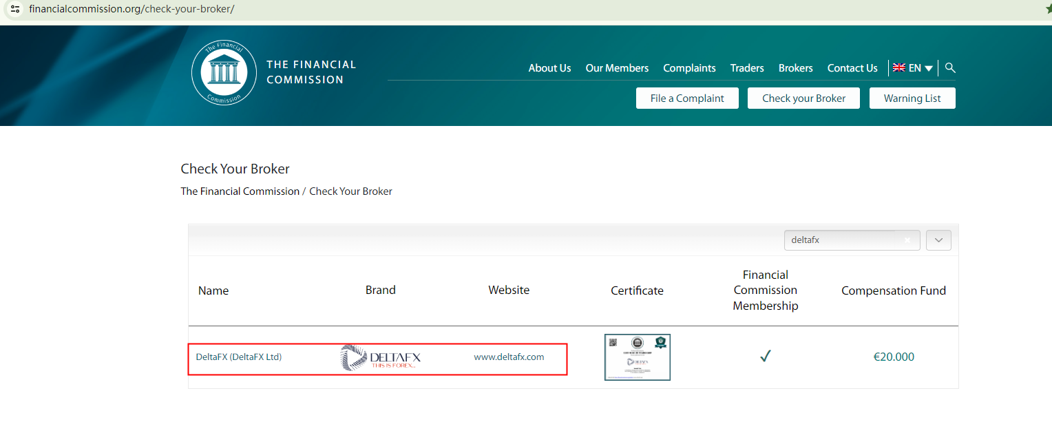 While Deltafx's claim of being a member of the Financial Commission is accurate, it's important to note that this institution is not a governmental regulatory body and does not claim to be one. The Financial Commission was established solely to resolve disputes between FX and CFD traders and brokers in a transparent and efficient manner. Therefore, membership in the Financial Commission does not equate to authorization or licensing from a financial regulator.