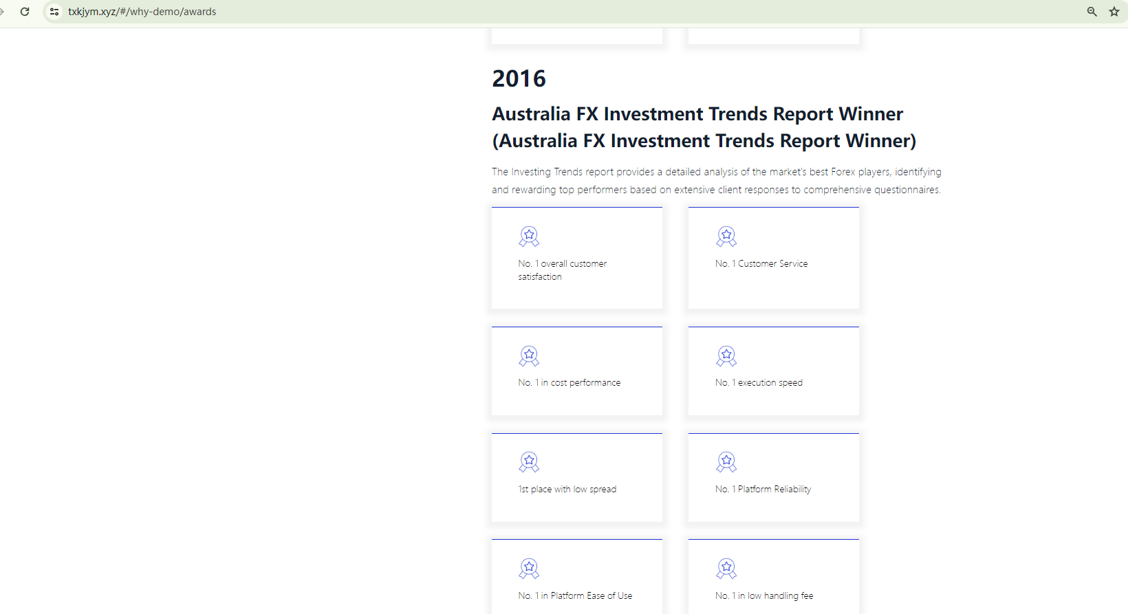 DEMO offers financial services through two websites: txkjym.xyz and penkn.com. The former was registered in April 2024 and the latter in August 2023. However, this brand asserts that it was founded in 2010 and has won awards since 2016. The discrepancy between these claims and the actual website registration dates raises a red flag.