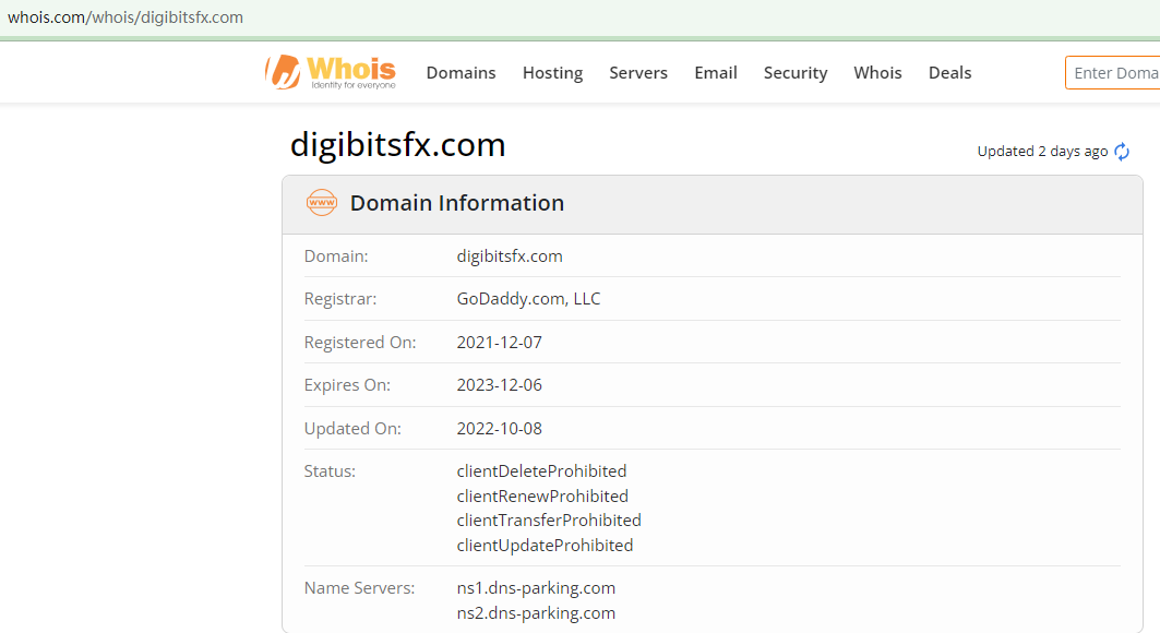 The website of Digibits, a forex broker previously registered with the Financial Services Authority of St. Vincent and the Grenadines (SVG FSA), has been shut down. Its domain, digibitsfx.com, is set to expire in early December 2023.