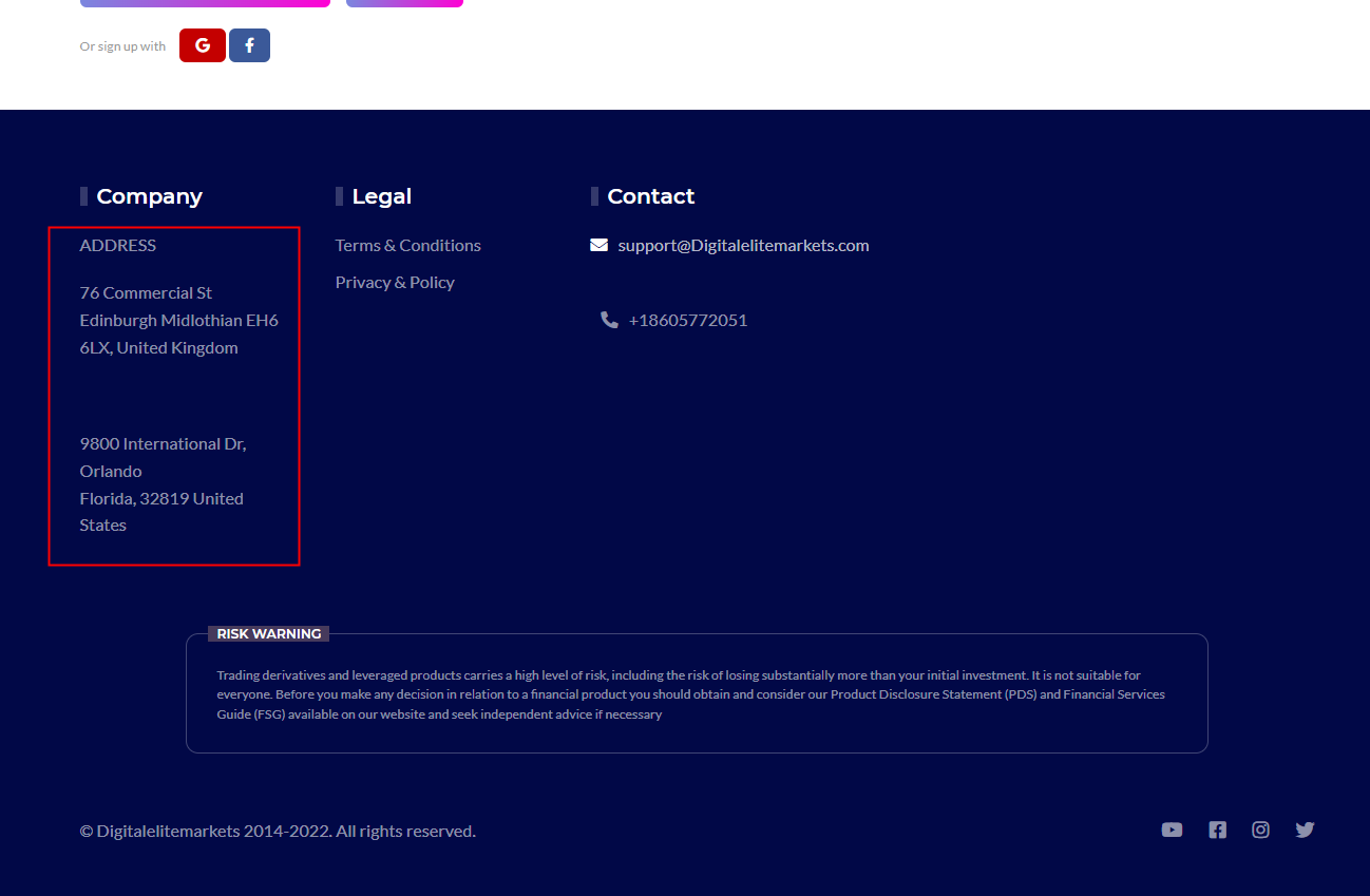 According its website, it has offices in the United States and the United Kingdom. Upon investigation, there is no matching information was found in the National Futures Aossociation (NFA).In addition, the United Kingdom Financial Conduct Authority (UK FCA) issued a warning that Digitalelitemarkets was providing finacial services or products without authorisation.The truth is that Digitalelitemarkets is not regulated by any regulators. Letting it hold or control investors' money is unsafe, and the money can not be protected by any laws.Digitalelitemarkets is a scam.