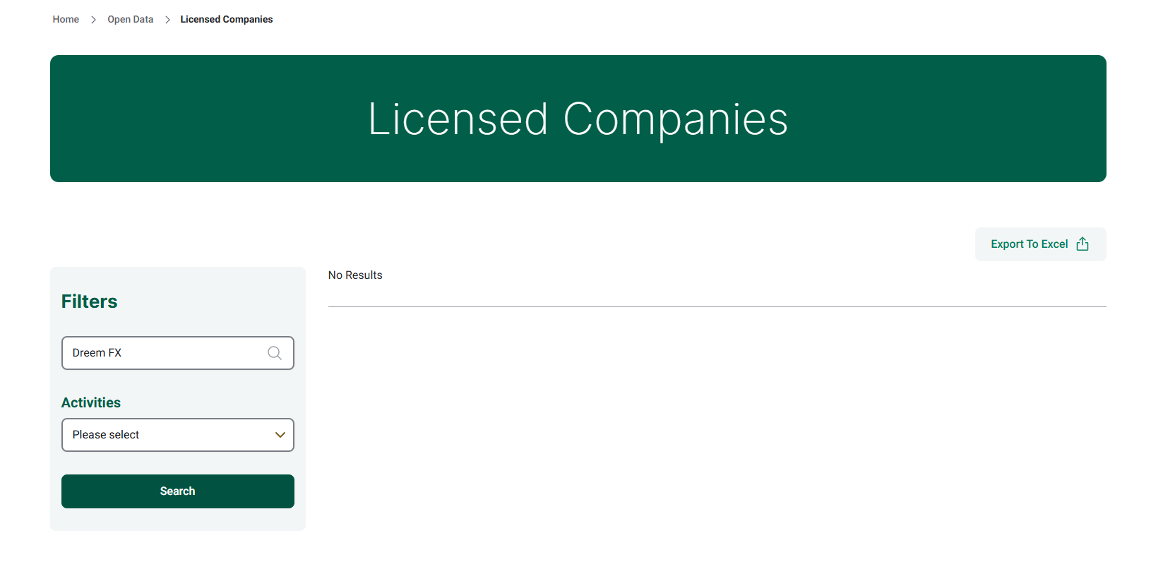Dreem FX’s website provides no verifiable regulatory disclosures, no legal entity name, and no registered business address, only a UAE phone number is listed. Our search of the official register of the Securities and Commodities Authority (SCA) returned no record of Dreem FX or any affiliated company.