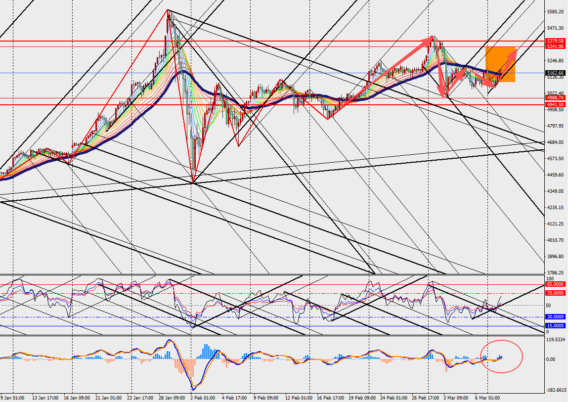 On the H4 chart, we can see gold is showing a sideways rebound and trading near the 48 hours moving average. In addition, the MACD double line and energy bars are contracting around the zero axis. The buy limit could be used, stop loss is mandatory.
