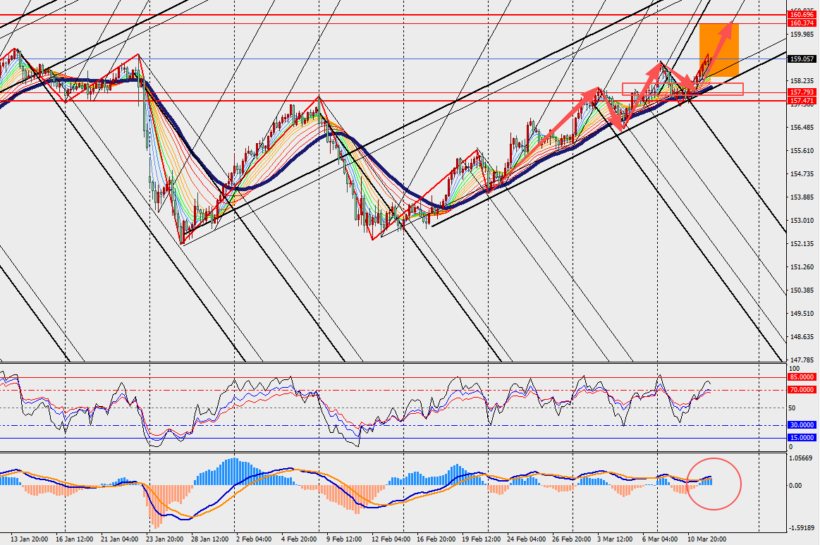 On the H4 chart, we can see USD/JPY continues to trend upward and is trading above the 48 hours moving average. In addition, both the MACD double line and histogram bars are expanding above the zero axis. The buy limit could be set, stop loss is necessary.
