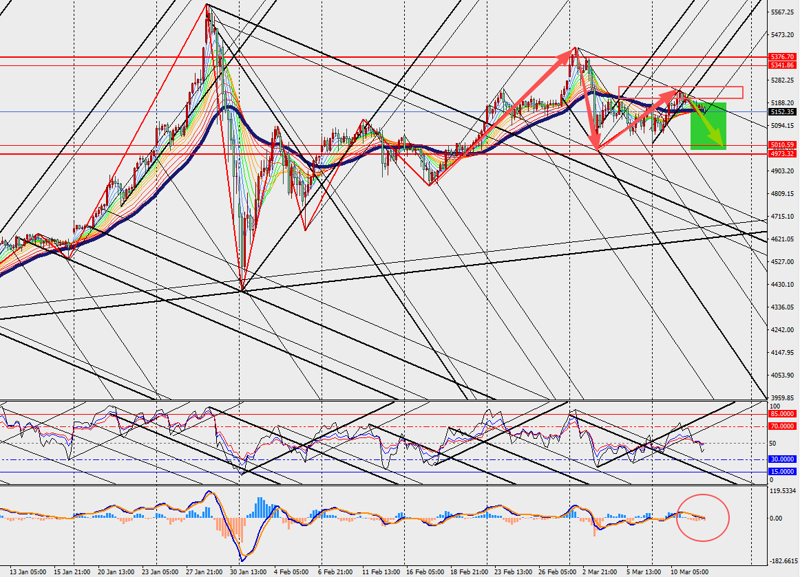 We can see gold has pulled back in a consolidating pattern and is trading near the 48 hours moving average on H4 chart. On the other hand, the MACD double line and energy bars are expanding around the zero axis. The sell limit could be placed, stop loss is mandatory.