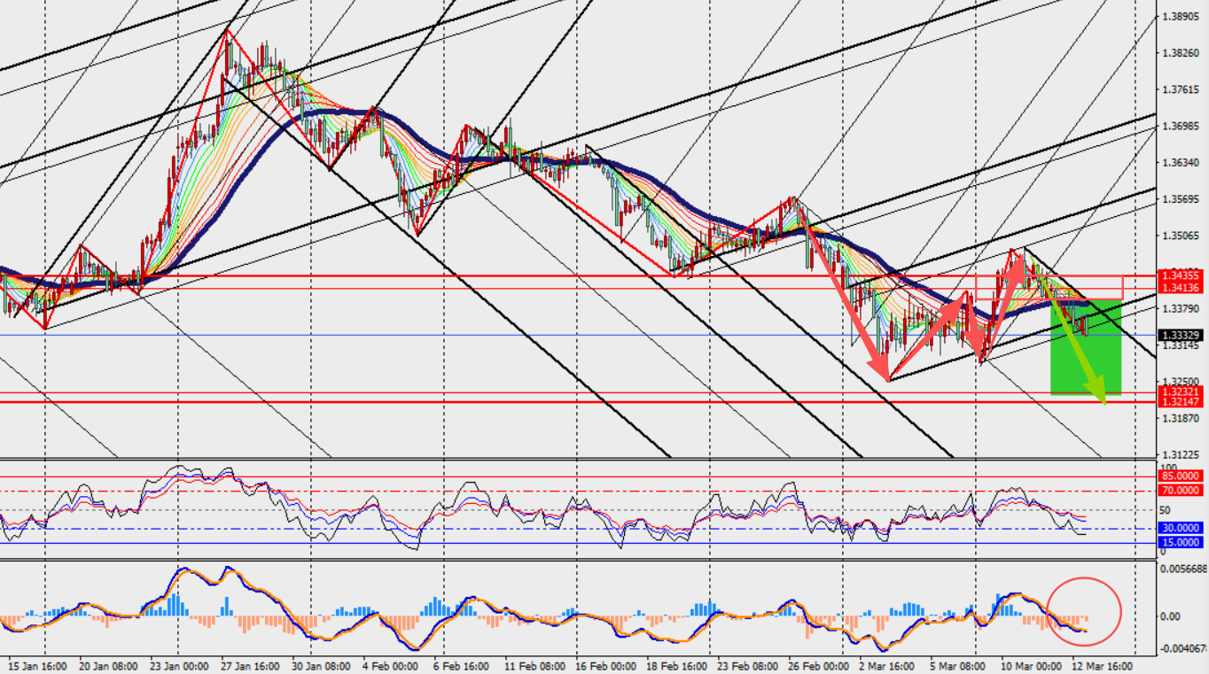 We can see GBP/USD on the chart is fluctuating and moving lower, remaining below the 48 hours moving average. In addition, the MACD double line and histogram bars are expanding around the zero axis. The sell limit could be set, stop loss is necessary.