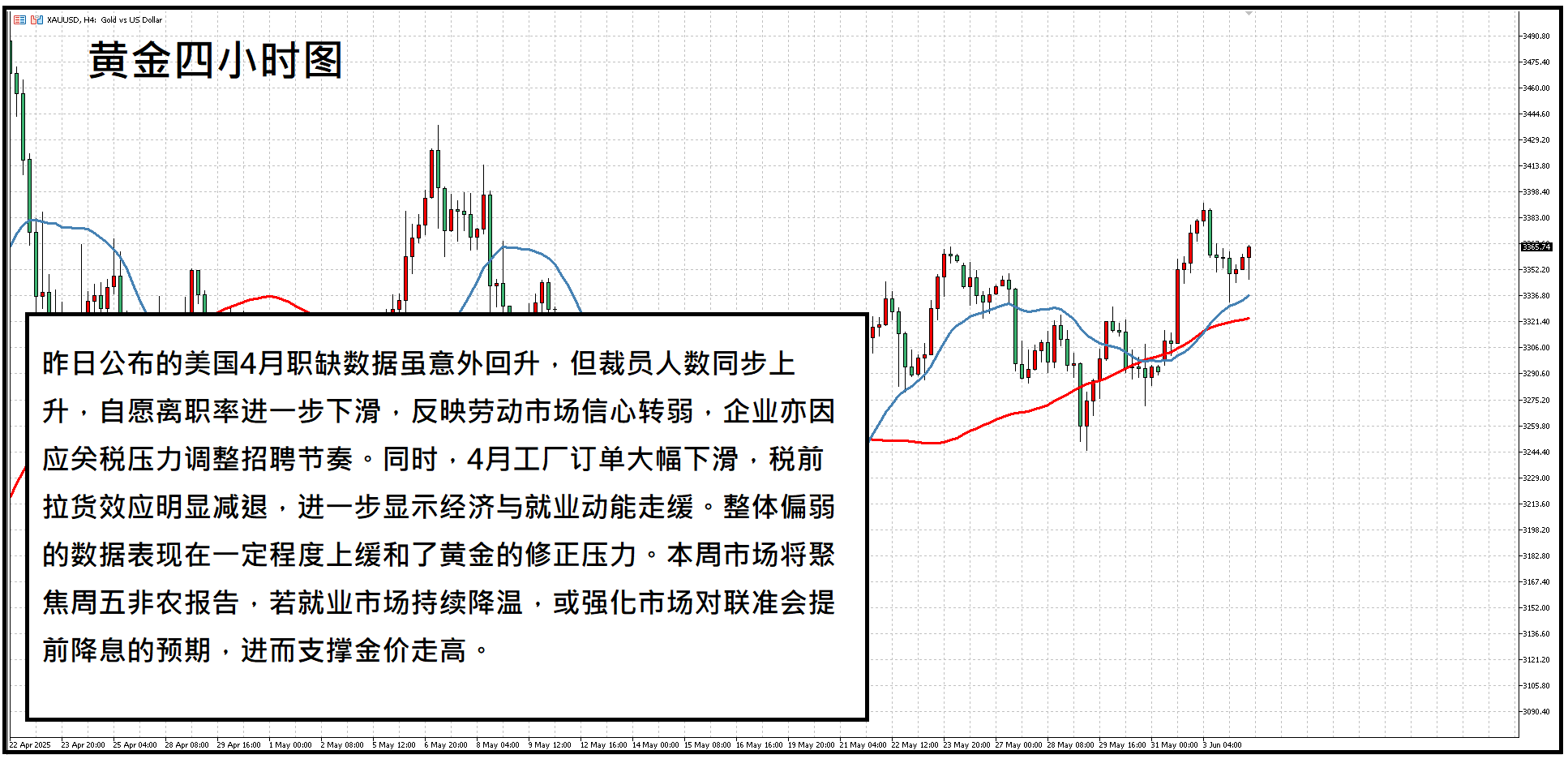 贵金属方面,昨日公布的美国4月职缺数据虽意外回升,但裁员人数同步上升,自愿离职率进一步下滑,反映劳动市场信心转弱,企业亦因应关税压力调整招聘节奏。同时,4月工厂订单大幅下滑,税前拉货效应明显减退,进一步显示经济与就业动能走缓。整体偏弱的数据表现在一定程度上缓和了黄金的修正压力。本周市场将聚焦周五非农报告,若就业市场持续降温,或强化市场对联准会提前降息的预期,进而支撑金价走高。