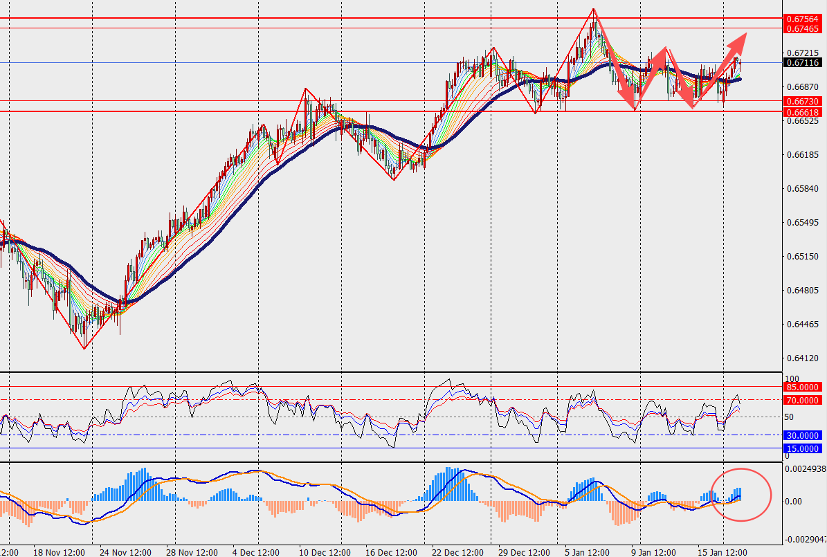 第一阻力位:0.6760                        第一支撑位:0.6670