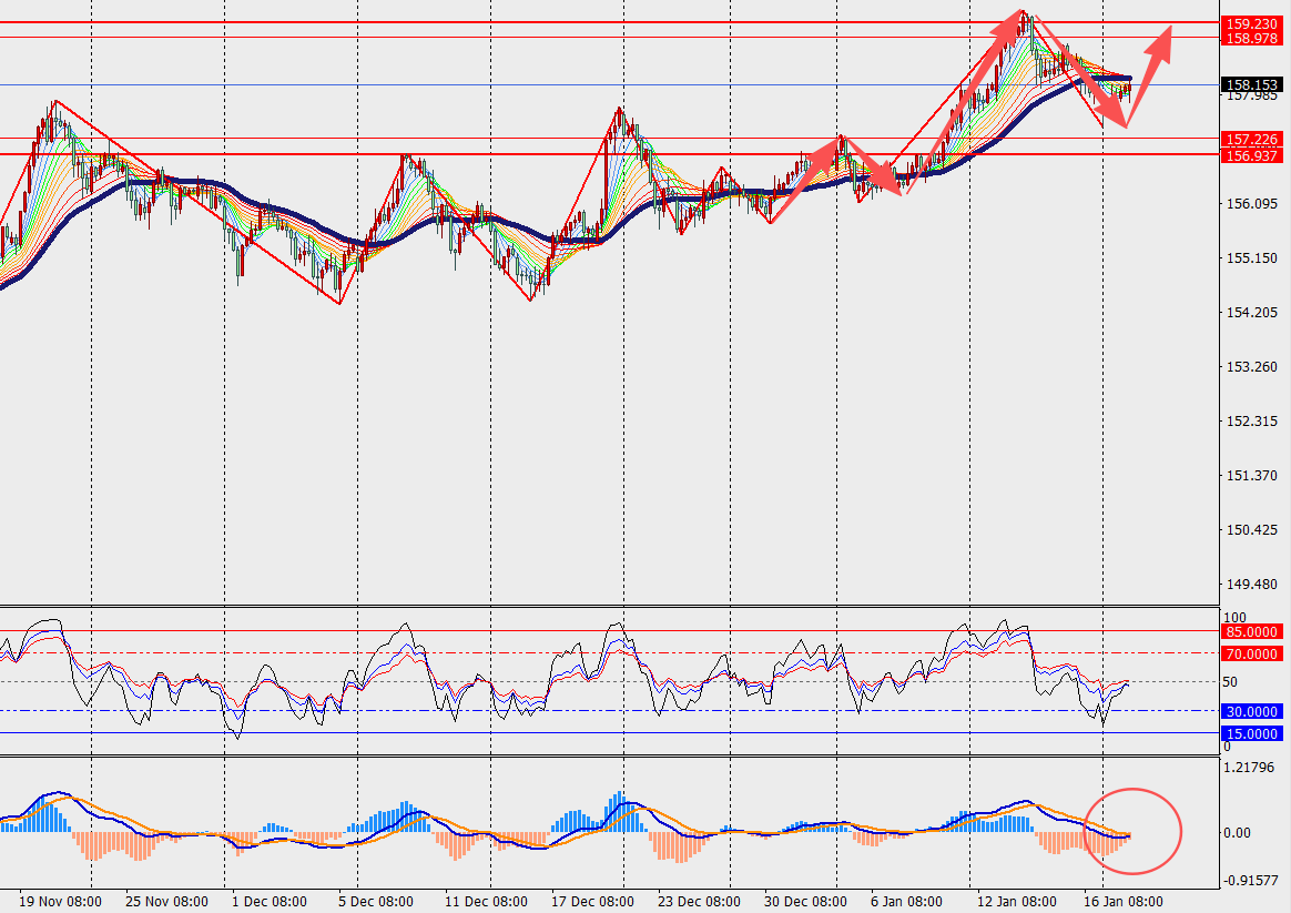 第一阻力位:159.00                          第一支撑位:157.40