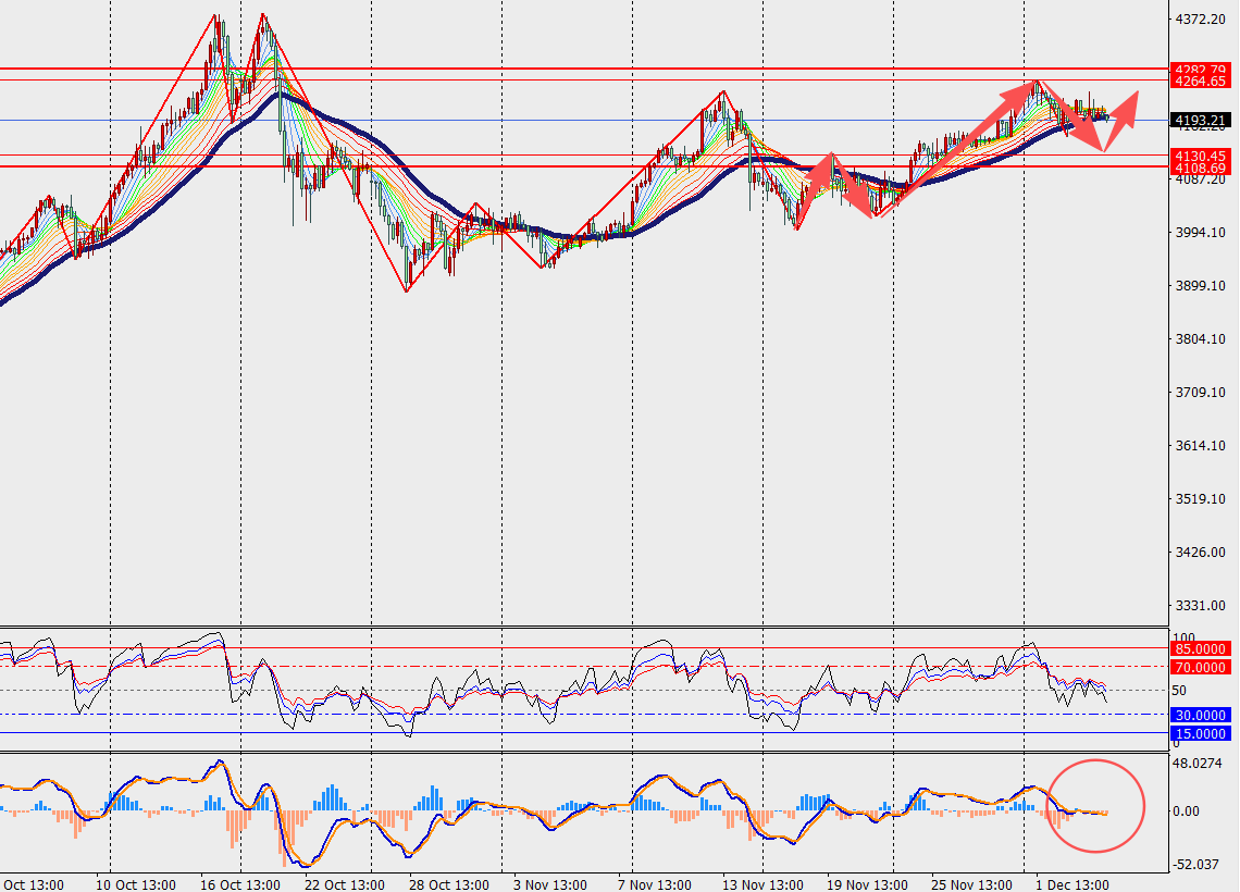 第一阻力位:4210.00                          第一支撑位:4175.00