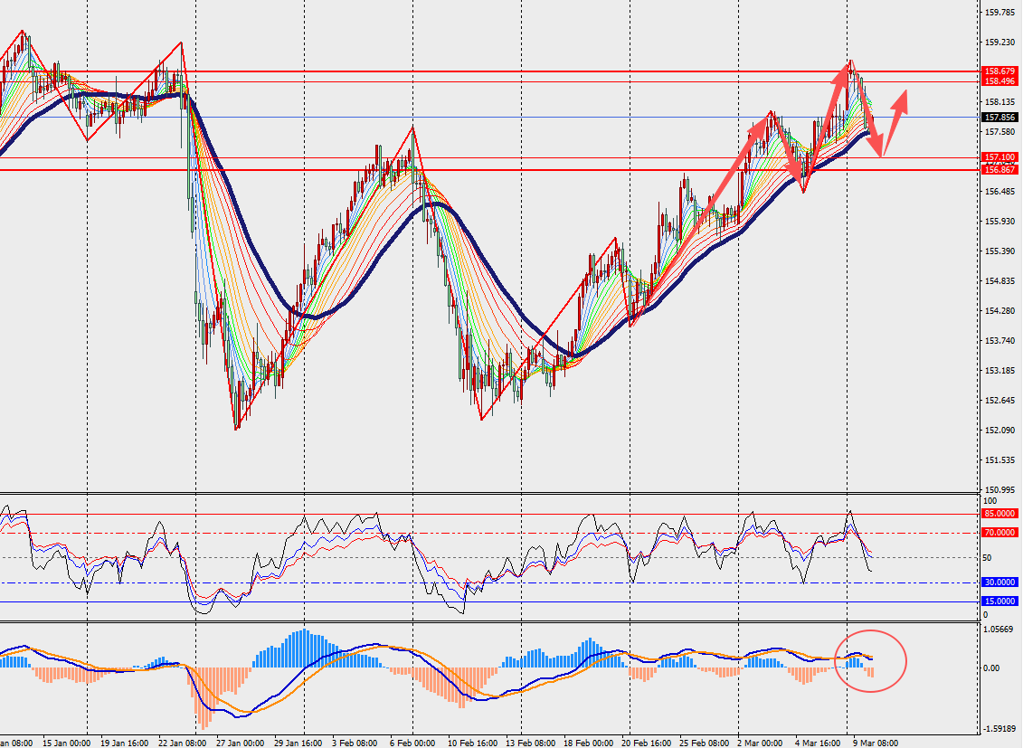 第一阻力位:158.50 第一支撑位:157.00