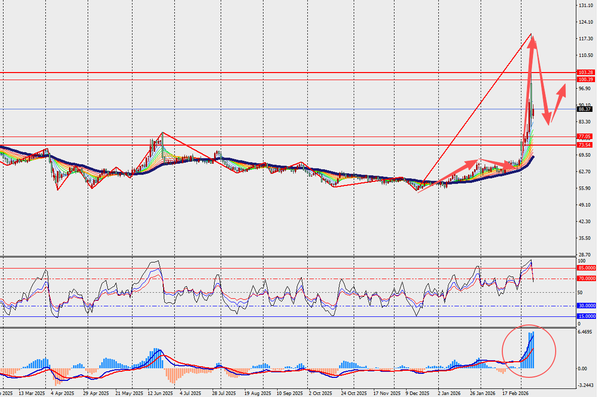 第一阻力位:95.00 第一支撑位:80.00
