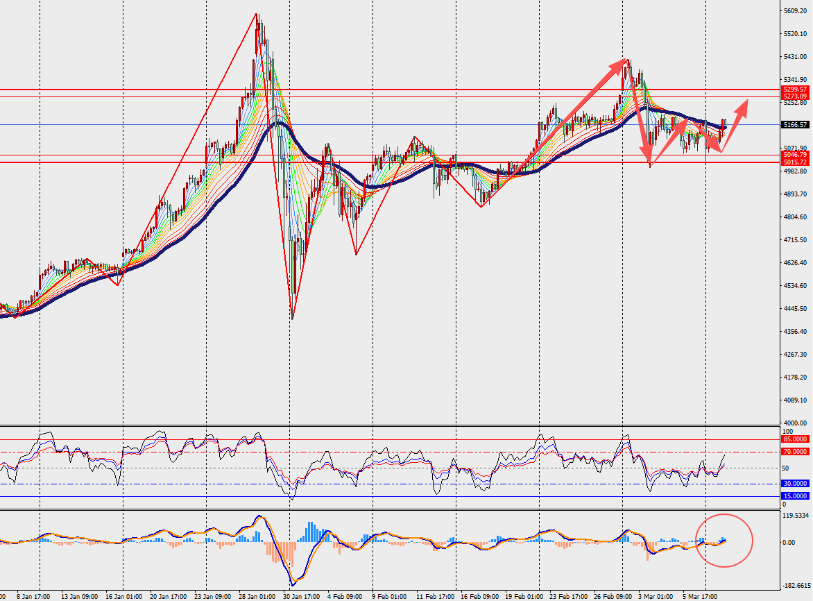 第一阻力位:5185.00 第一支撑位:5150.00