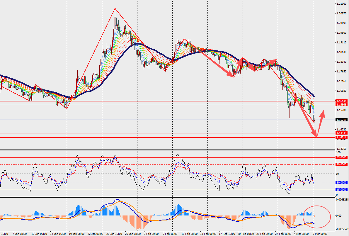 基本面:在美元走强的背景下,3月9号,黄金价格下跌,现货黄金一度逼近5000美元关口,因为持有非美元货币的投资者对以美元计价的资产的兴趣降低。在因美国和以色列对伊朗的袭击而引发的避险情绪推动下,美元比黄金更受青睐,成为首选的避险资产。通货再膨胀风险可能会阻止美联储降息,并进一步削弱黄金的吸引力。