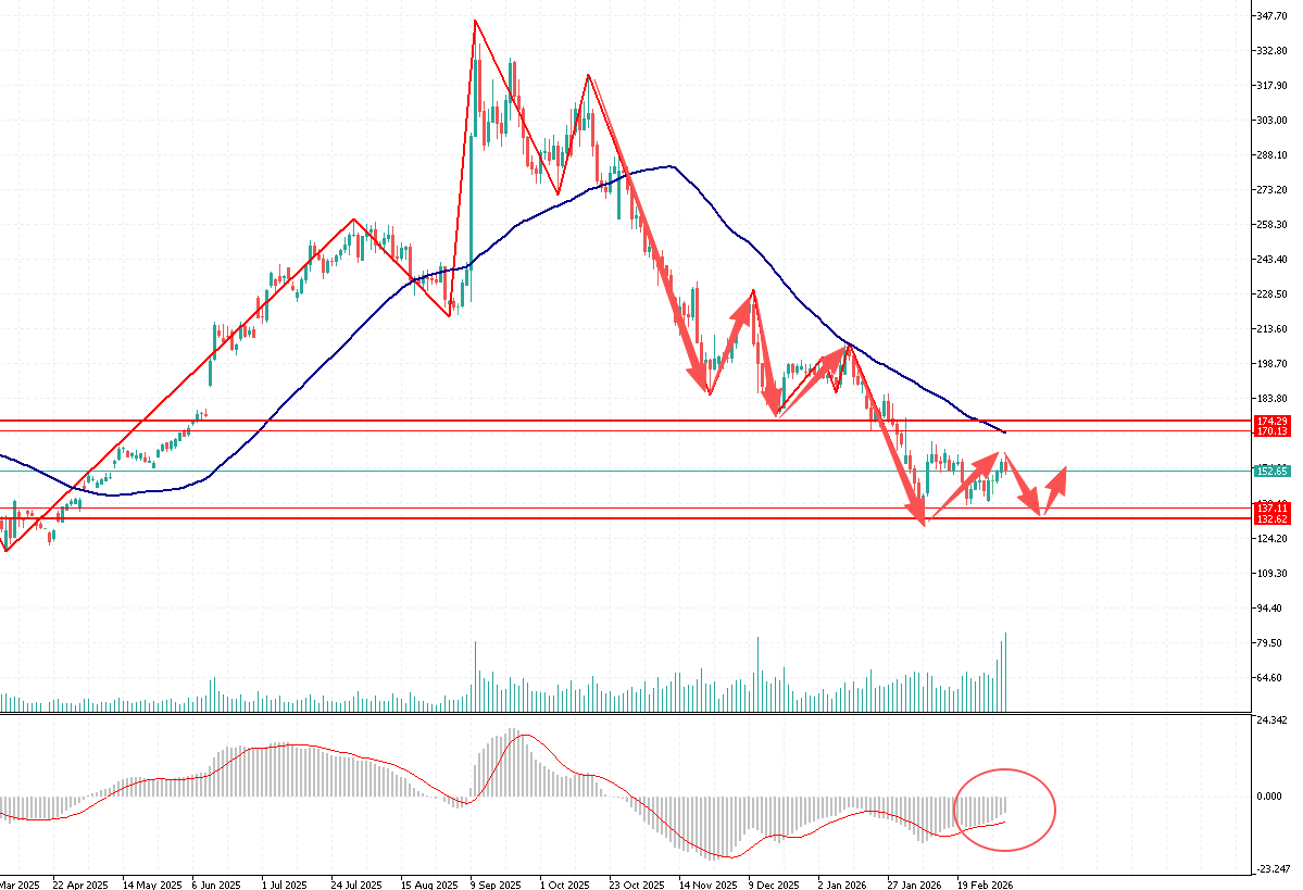 技术面:黄金H4级别下跌反弹,并依旧在48日多空分界线下方运行。此外,MACD双线和量能柱在零轴附近扩张。地缘政治局势以及全球宏观背景仍对黄金构成支撑。如果伊朗冲突升级,黄金价格在3月可能重新测试5500美元。