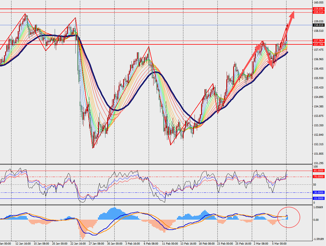 技术面:美元兑日元H4级别持续上涨,并在48日多空分界线上方运行。此外,MACD双线和量能柱在零轴上方扩张。日本首相高市早苗近期在议会强调,将采取一切必要措施确保能源稳定供应,凸显对供应链脆弱性的高度警觉。