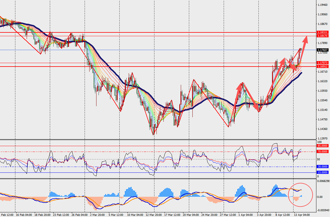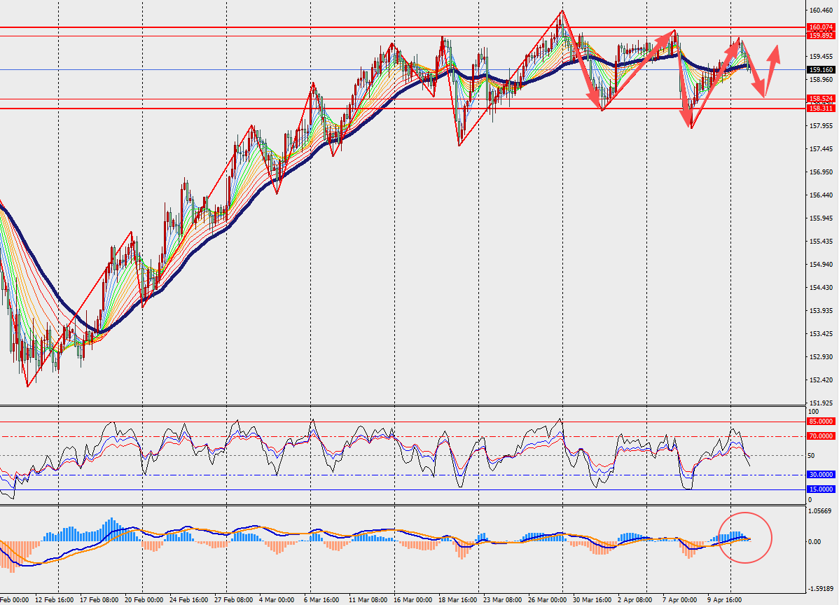 技术面: 欧元兑美元H4级别持续上行,并在48日多空分界线上方运行。此外,MACD双线与量能柱在零轴上方扩张。受中东战争推高能源成本、扰乱全球供应链影响,欧元区3月私营部门扩张力度显著减弱,出现八个月以来首次下降。